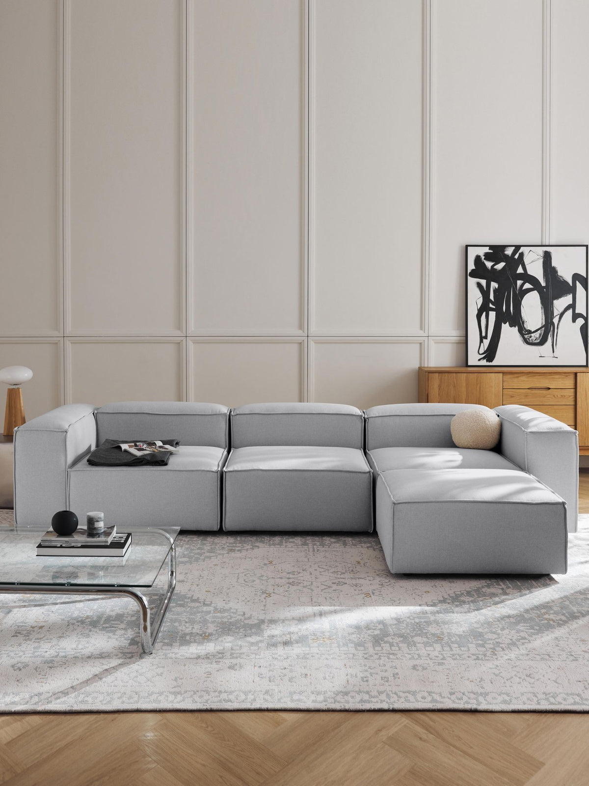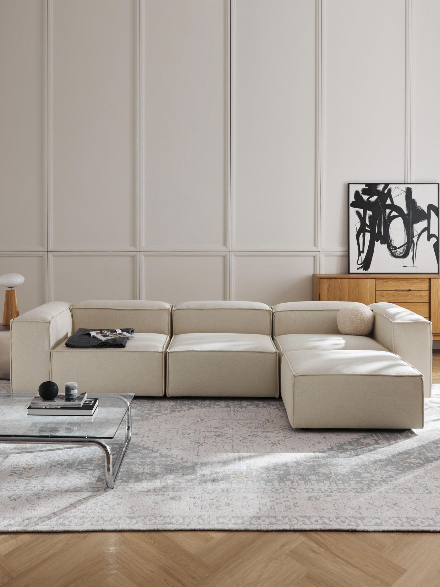 Canapé modulable 4 places en Lin avec pouf Frid