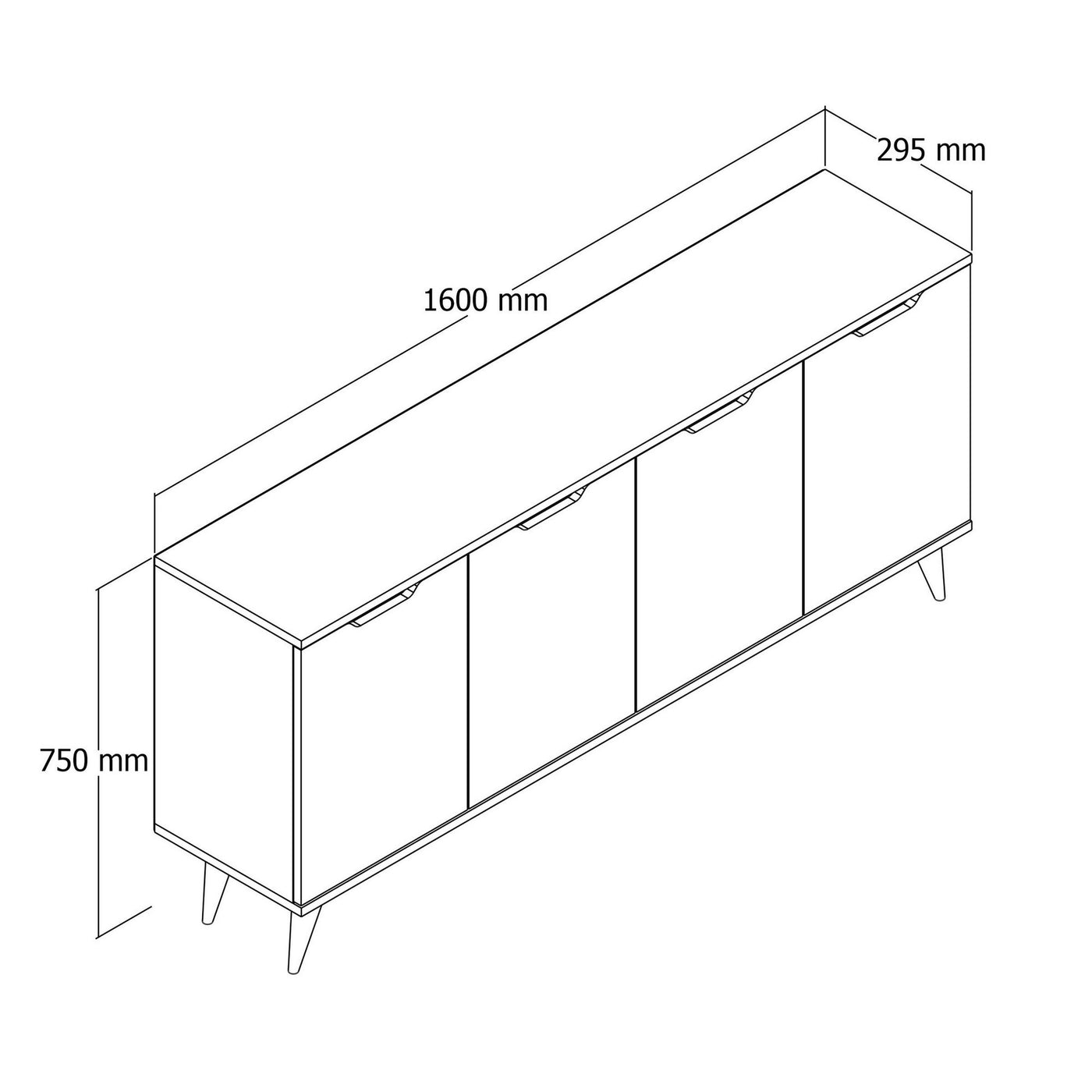 100% de panneaux de puceÉpaisseur: 18 mmLargeur: 160 cm Hauteur: 75 cm de profondeur: 29,5 cmPattes en plastique