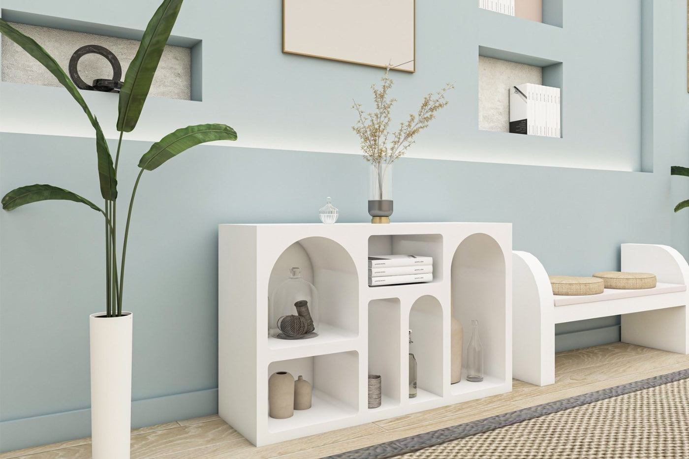 Avec son design épuré et moderne, cette console respire l'élégance et la sophistication, ce qui en fait le complément idéal de votre décoration intérieure. Le blanc éclatant ajoute une touche de pureté et de sérénité, créant une ambiance apaisante qui rehaussera instantanément votre espace.