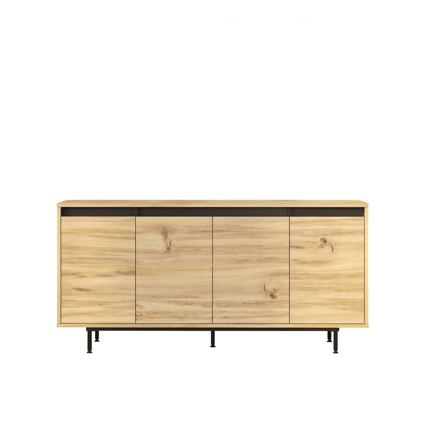 Carte de particules à revêtement en mélamine 100%Épaisseur: 18 mmJambes en métalLargeur: 160 cm Hauteur: 75,6 cm profondeur: 44,5 cmHauteur de la jambe: 12 cmDe nombreuses étagères