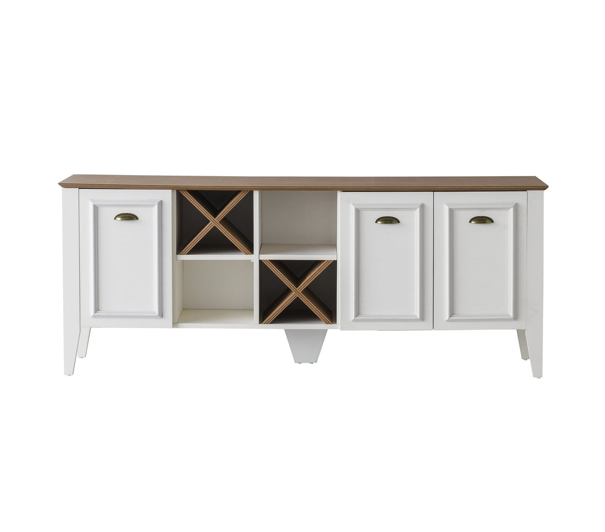 La beauté de son design épuré s'intègre sans effort à tous les styles de décoration, créant une atmosphère harmonieuse et accueillante dans votre salon, votre couloir ou votre chambre à coucher. La combinaison des couleurs blanc et noyer ajoute une touche de sophistication et de chaleur, faisant de cette console une véritable pièce d'apparat.