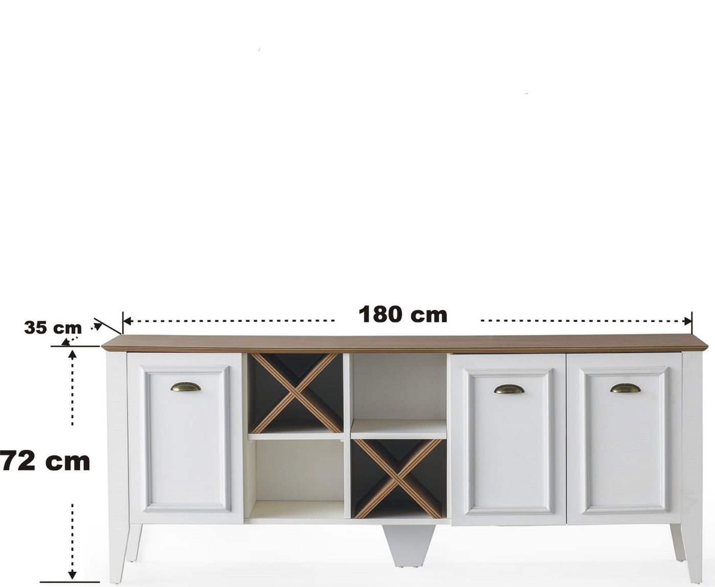 Les dimensions de la console vous permettent d'améliorer vos capacités d'organisation et de rangement. Avec une épaisseur de 18 mm, une largeur de 180 cm, une hauteur de 72 cm et une profondeur de 35 cm (2 pièces), vous disposerez de beaucoup d'espace pour exposer vos objets de décoration préférés, ranger des livres ou garder les objets essentiels à portée de main.