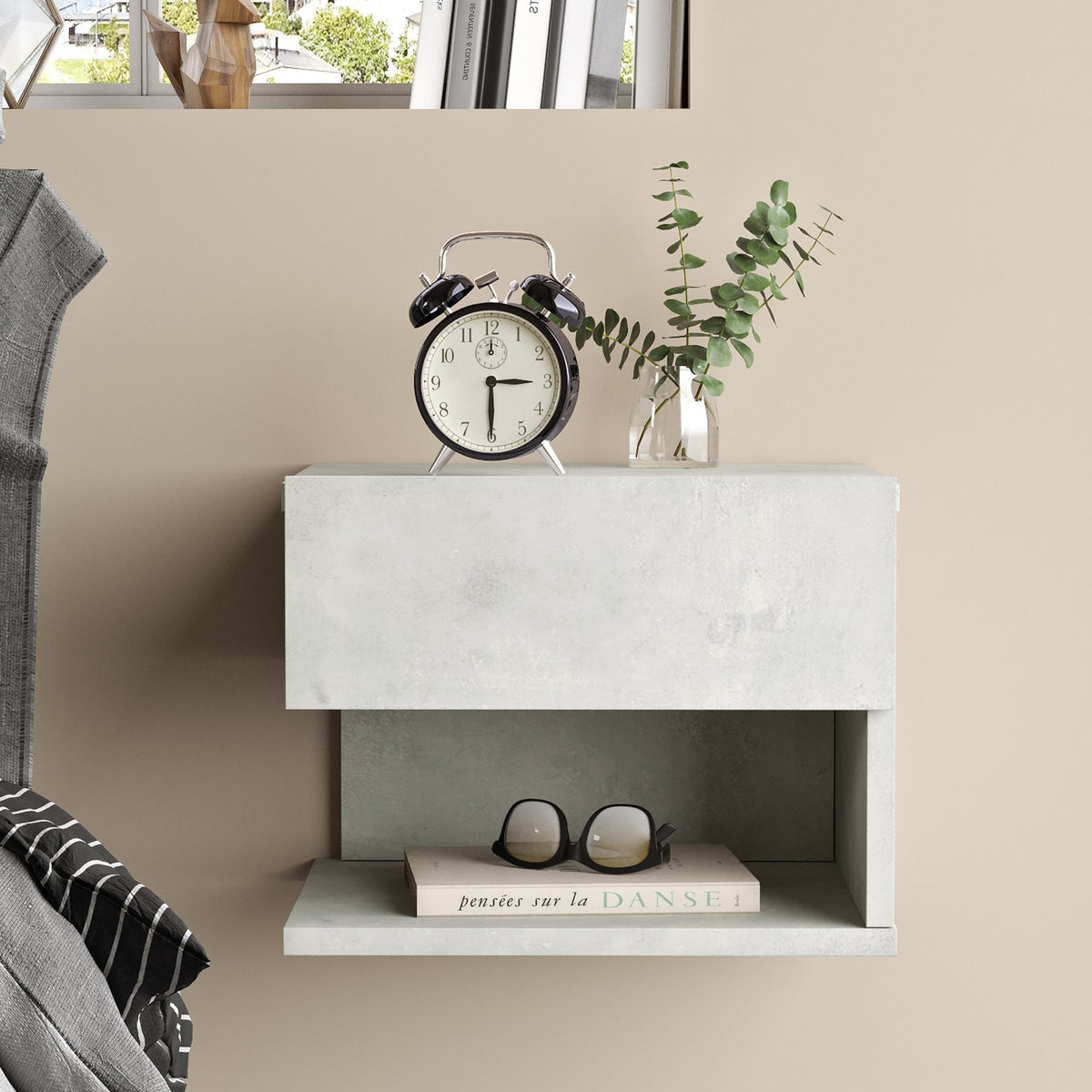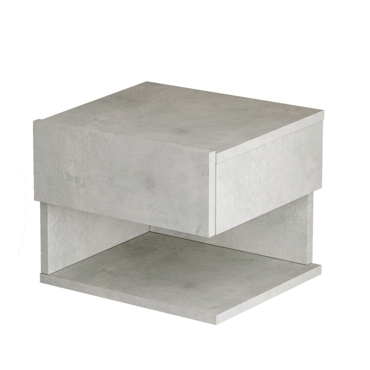 Carte de particules à revêtement en mélamine 100%Épaisseur: 18 mmTaille de nuit: Largeur: 40 cm Hauteur: 35,3 cm profondeur: 31,3 cmTaille du tiroir: Largeur: 40 cm Hauteur: 16,8 cm profondeur: 33,5 cmHauteur du plateau: 14,5 cmStockage supplémentaire