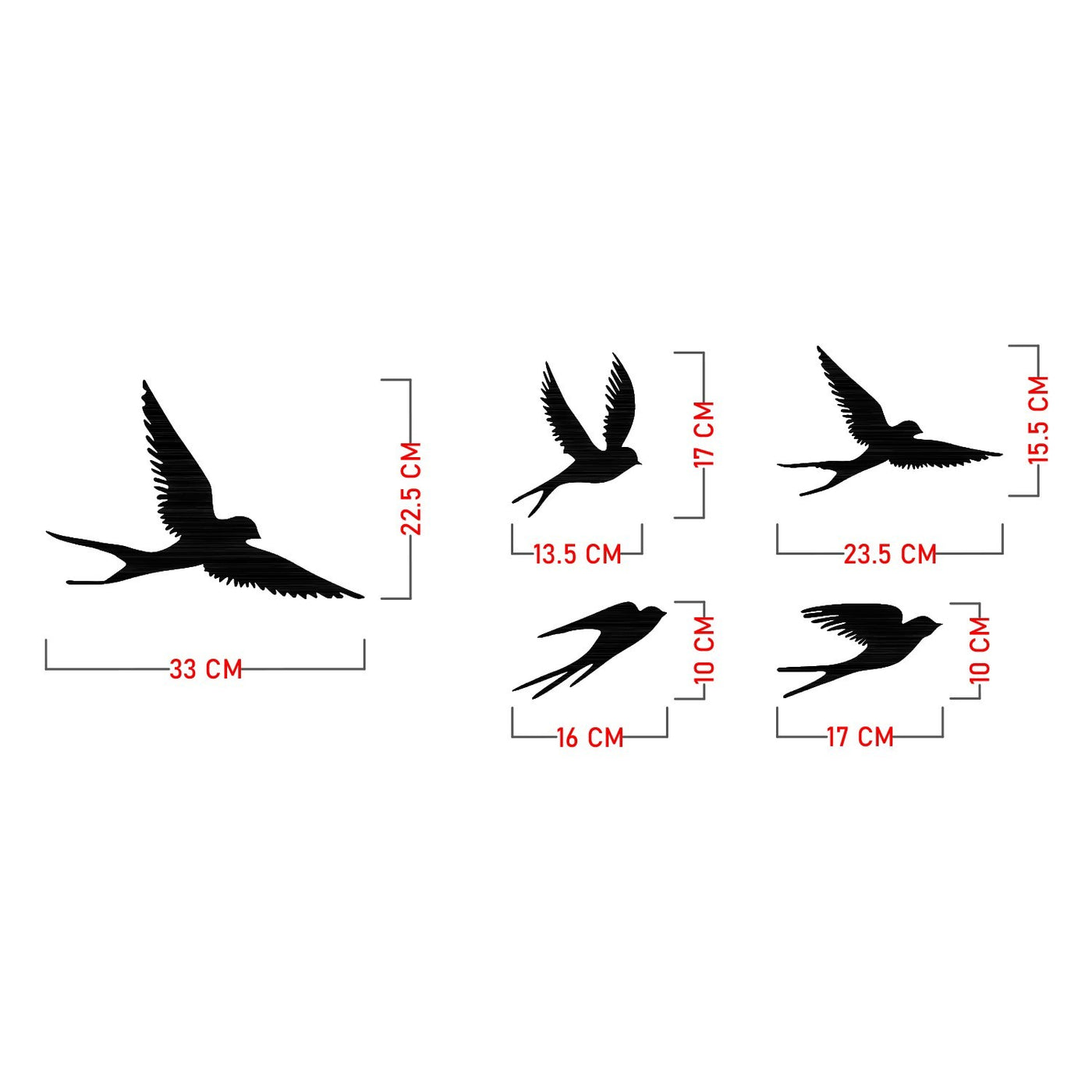 100% métal (épaisseur: 1,2 mm)Oiseau n ° 1: 33 x 22,5 cm (1 pièce)Oiseau n ° 2: 13,5 x 17 cm (1 pièce)Oiseau n ° 3: 16 x 10 cm (1 pièce)Bird n ° 4: 23,5 x 15,5 cm (1 pièce)Oiseau n ° 5: 17 x 10 cm (1 pièce)