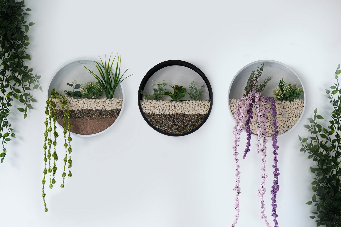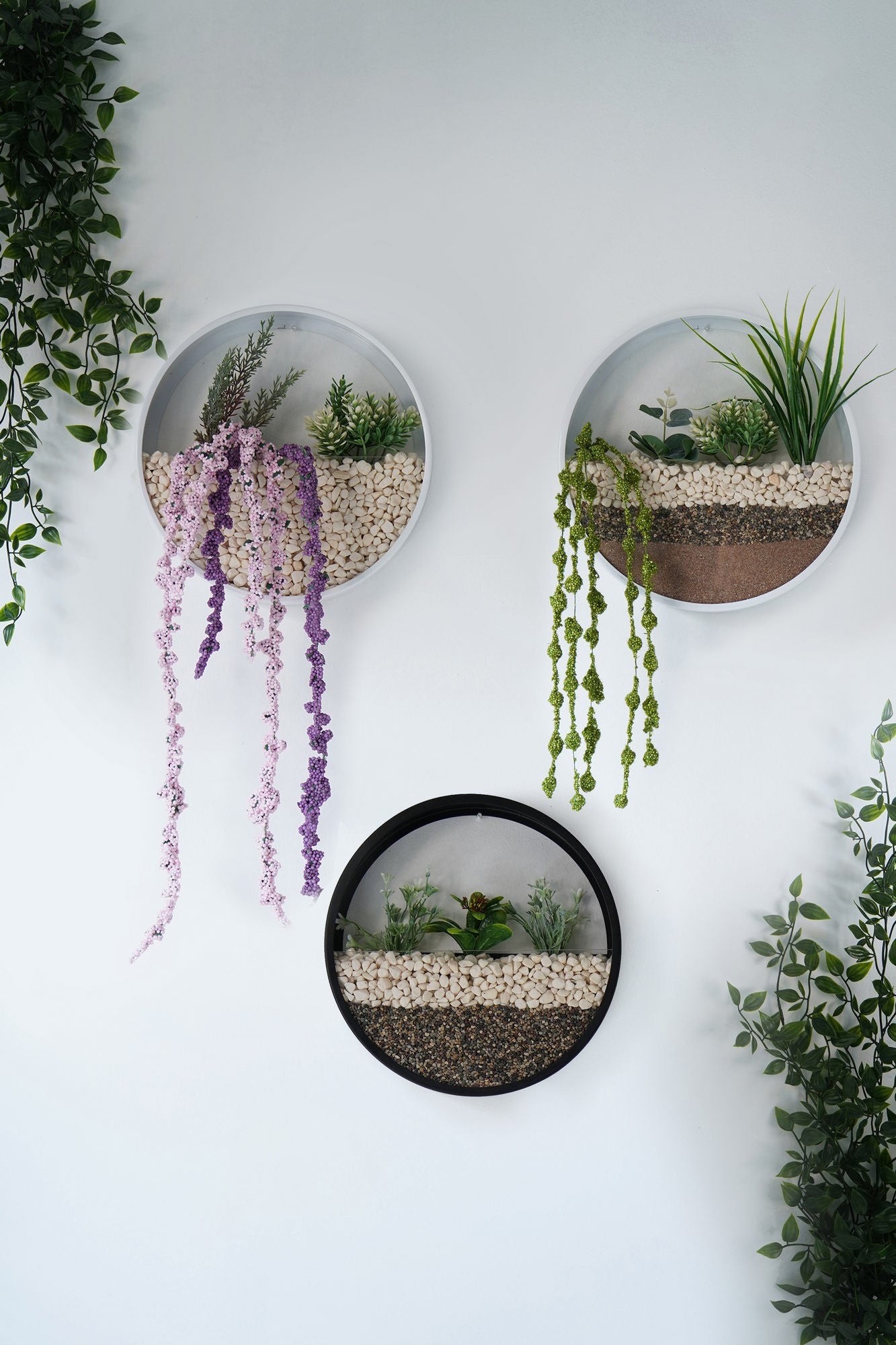 Le parterre de fleurs mural en métal comprend trois grands parterres de fleurs, chacun mesurant 30 x 30 x 5 cm. Ces massifs sont remplis d'une combinaison de sable floral et/ou de galets colorés, créant ainsi un spectacle visuel époustouflant. L'ajout de plantes artificielles ajoute une touche de beauté naturelle et donne vie à vos murs. Les couleurs noires et blanches contrastées du produit créent un effet saisissant et accrocheur, ce qui en fait un complément parfait à tout style de décoration.