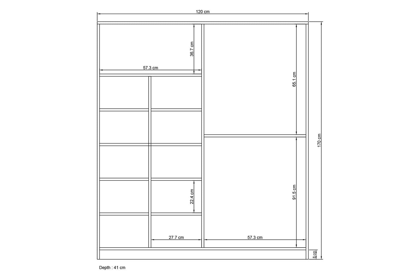 Dites adieu aux espaces encombrés et bonjour au bonheur organisé ! Notre armoire offre un vaste espace de rangement pour tous vos effets personnels. Avec une largeur de 120 cm, une hauteur de 170 cm et une profondeur de 41 cm, cette armoire offre suffisamment d'espace pour vos vêtements, accessoires et autres. Tout est bien rangé et facilement accessible, ce qui facilite vos tâches quotidiennes.