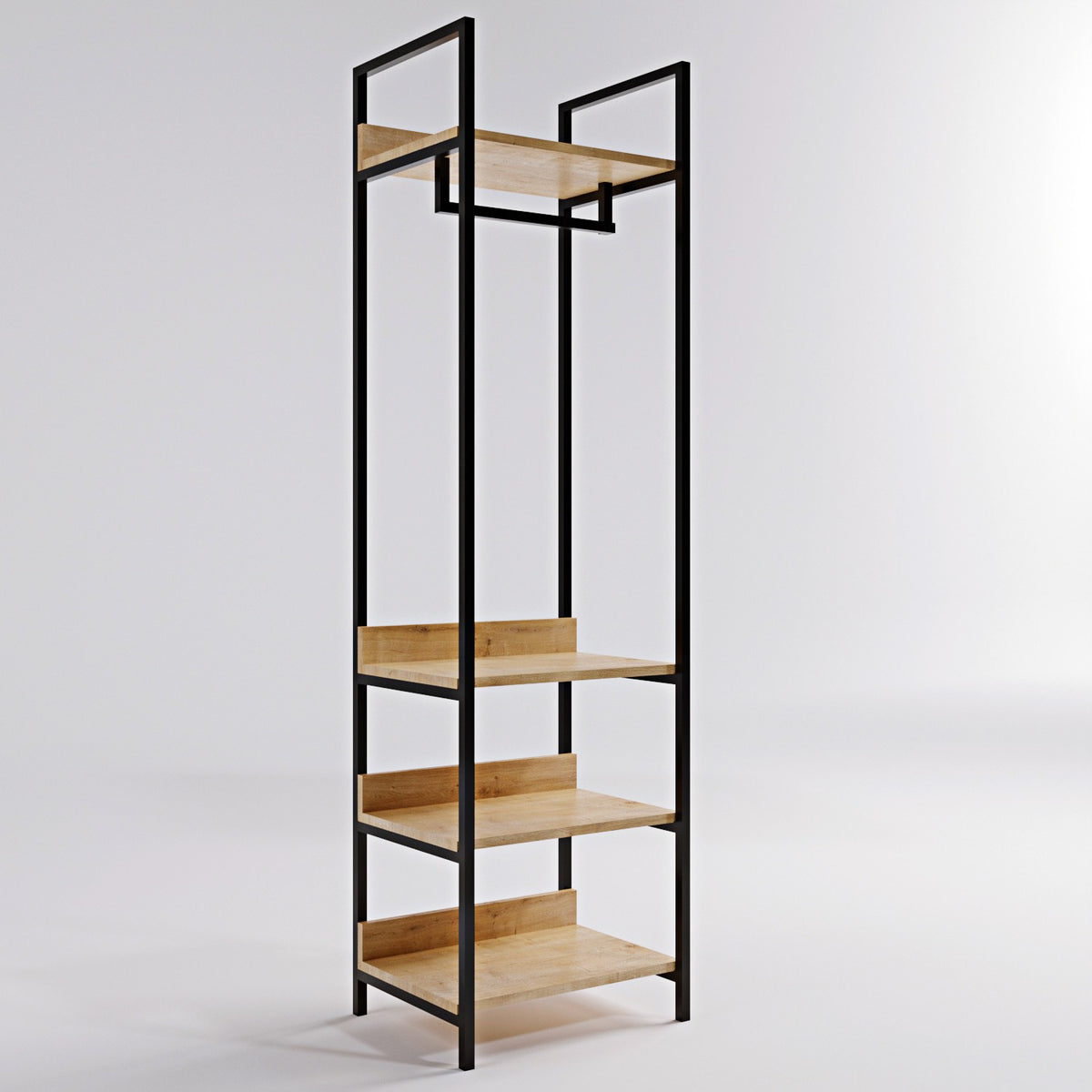 Carte de particules à revêtement en mélamine 100%Épaisseur: 18 mmJois de métal enduit de poudre électrostatiqueLargeur: 50 cm Hauteur: 180 cm de profondeur: 40 cmDe nombreuses étagèresPeut être fixé au mur