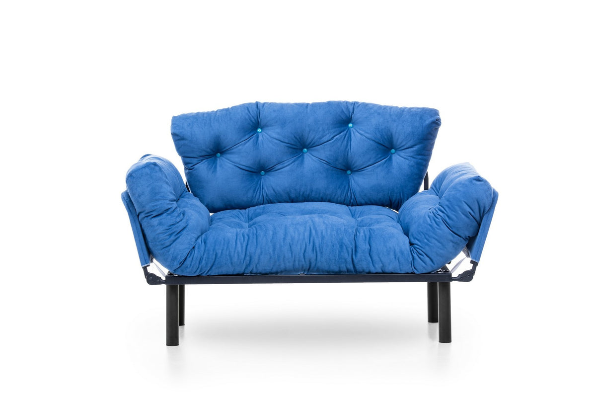 Avec son design épuré et contemporain, notre canapé-lit 2 places est une véritable pièce d'apparat qui rehaussera l'esthétique de n'importe quelle pièce. La couleur bleue unie ajoute une touche d'éclat, tandis que le cadre d'inspiration industrielle exsude un sentiment de sophistication.