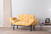 Le canapé-lit est soutenu par des pieds en plastique qui assurent sa stabilité et sa durabilité. Sa couleur moutarde ajoute une touche de chaleur et de dynamisme à votre espace de vie, ce qui en fait le point central de n'importe quelle pièce.