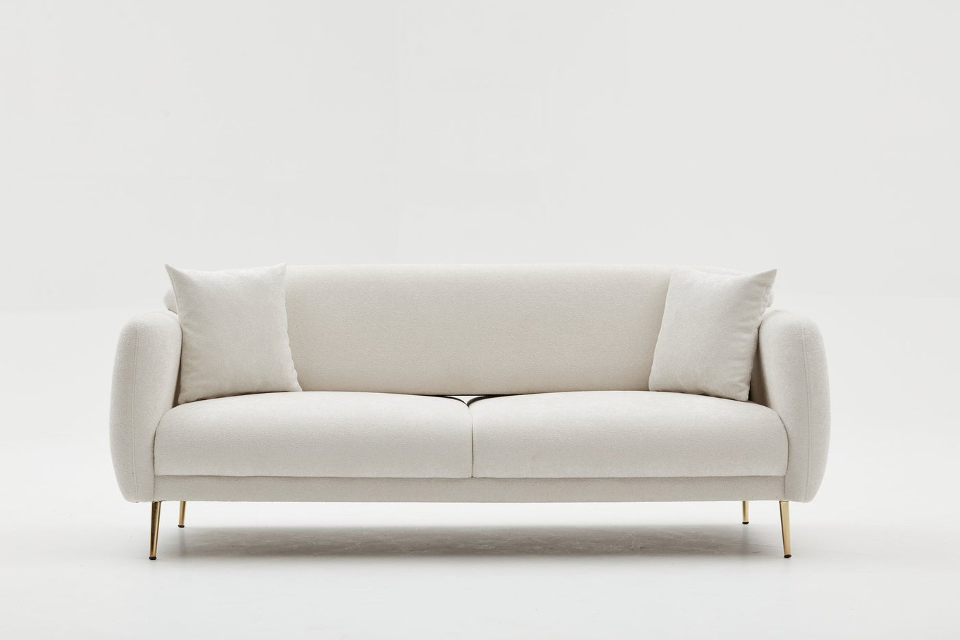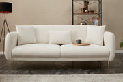 Offrez-vous une expérience de relaxation ultime avec notre canapé-lit 3 places. Ses coussins moelleux et son design ergonomique offrent un confort exceptionnel, vous permettant de vous détendre après une longue journée. La couleur crème unie ajoute une touche d'élégance, tandis que les accents dorés apportent une touche de glamour à votre intérieur.
