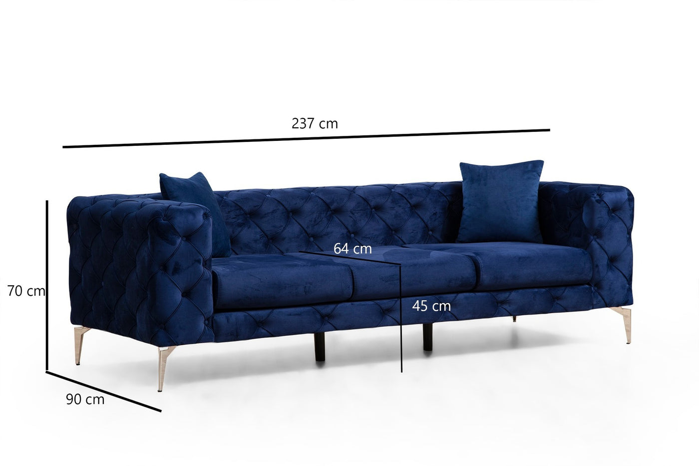 Cadre: bois de hêtre / panneaux de bordTissu: 100% polyesterLargeur: 237 Hauteur: 70 cm de profondeur: 90 cmMousse: 5 cm 28 DNS mousse grise + 5 cm 24 dns plume pour s'asseoir,24 DNS Feather pour le dosDétail: 4 oreillers inclus% 60 mousse coupée /% 40 mousse de siliconeTaille: 45 cm x 45 cmCoussin assis portable, coussin arrière fixeProfondeur du siège: 66 cmÉpaisseur de coussin de siège: 15 cmHauteur de repos du dos: 70 cmTaille de l'accoudoir: profondeur: 90 cm Largeur: 27 cmTissu à secJambes: jambes en métal chroméHauteur de mousse: 16 cmCouverture de coussin amovible