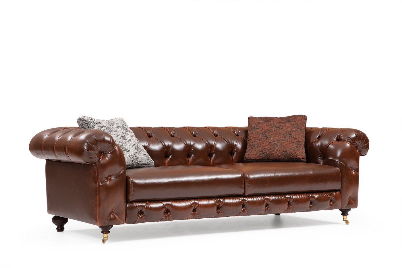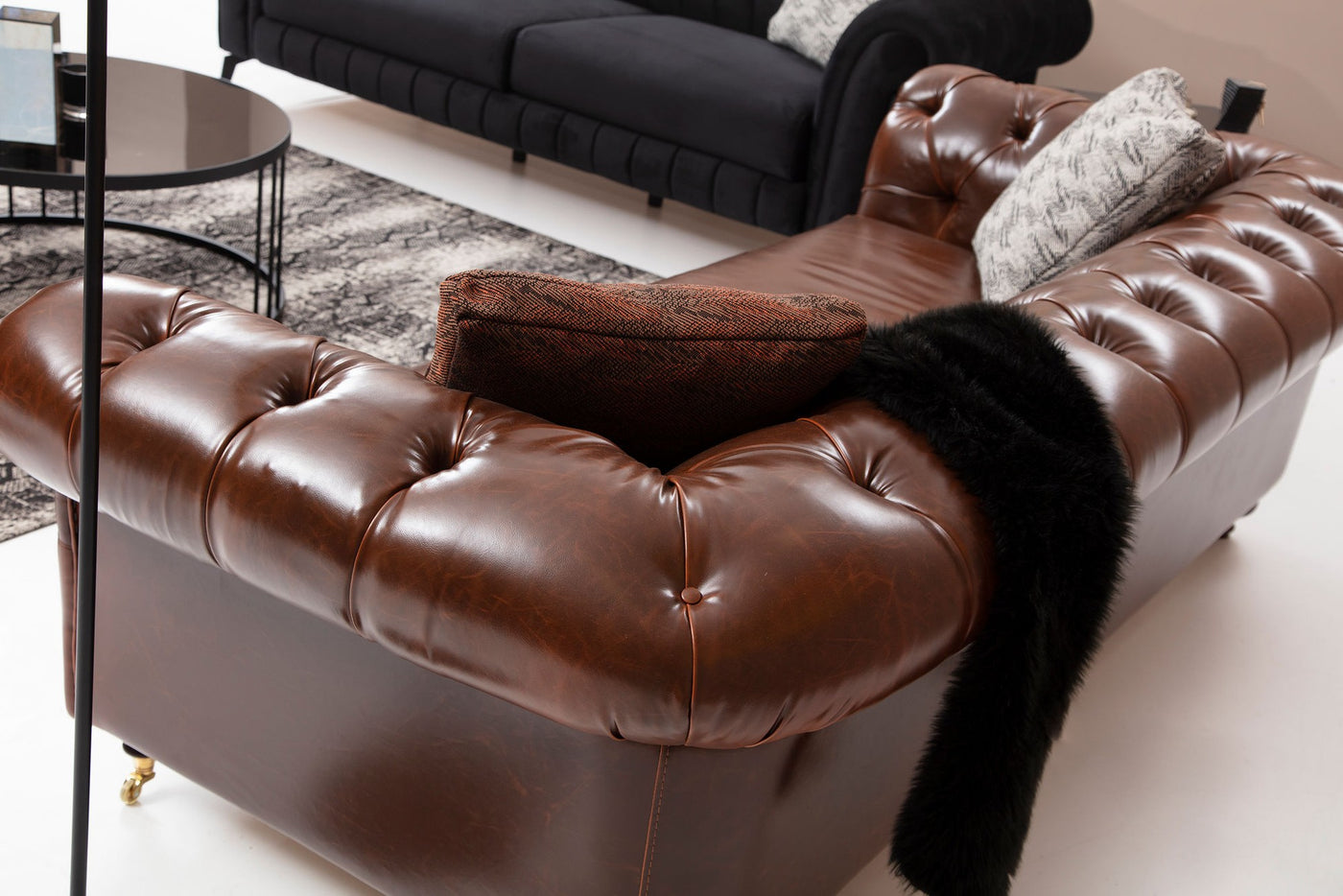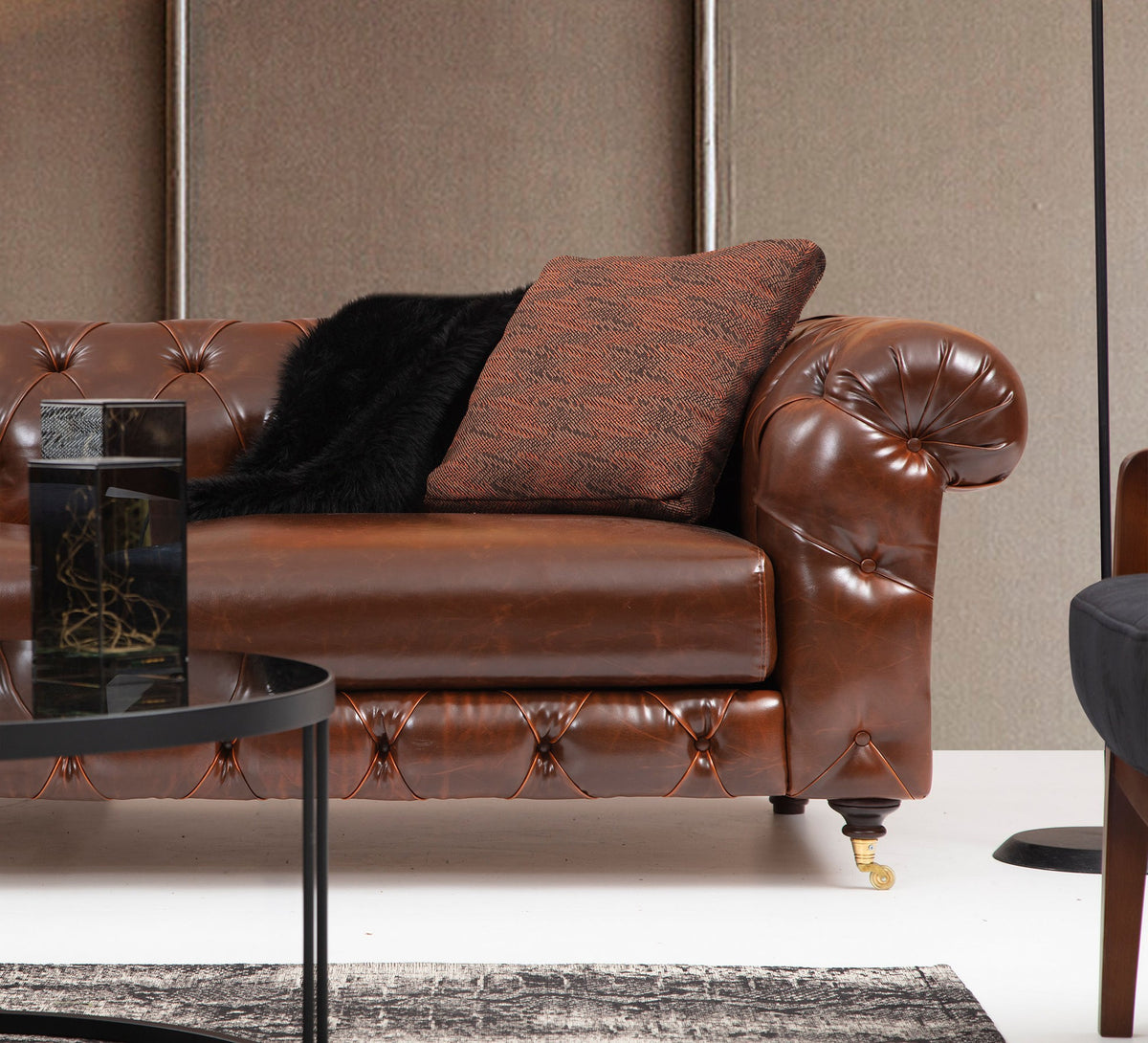 Avec sa couleur marron unie, notre canapé se fond sans effort dans tous les styles d'intérieur, qu'ils soient traditionnels américains, d'inspiration hôtelière, rustiques ou du sud-ouest. Les pieds en bois de noyer ajoutent une touche de sophistication, rehaussant l'esthétique générale de votre espace.