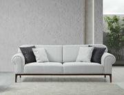 Fabriqué à partir d'une combinaison d'aggloméré et de bois de hêtre, notre canapé se targue d'être durable et robuste. Le design épuré et les couleurs Ares White s'intègrent sans effort à tous les styles d'intérieur, ajoutant une touche de sophistication à votre espace de vie. Les pieds en bois de hêtre constituent une base solide et rehaussent l'attrait esthétique général.
