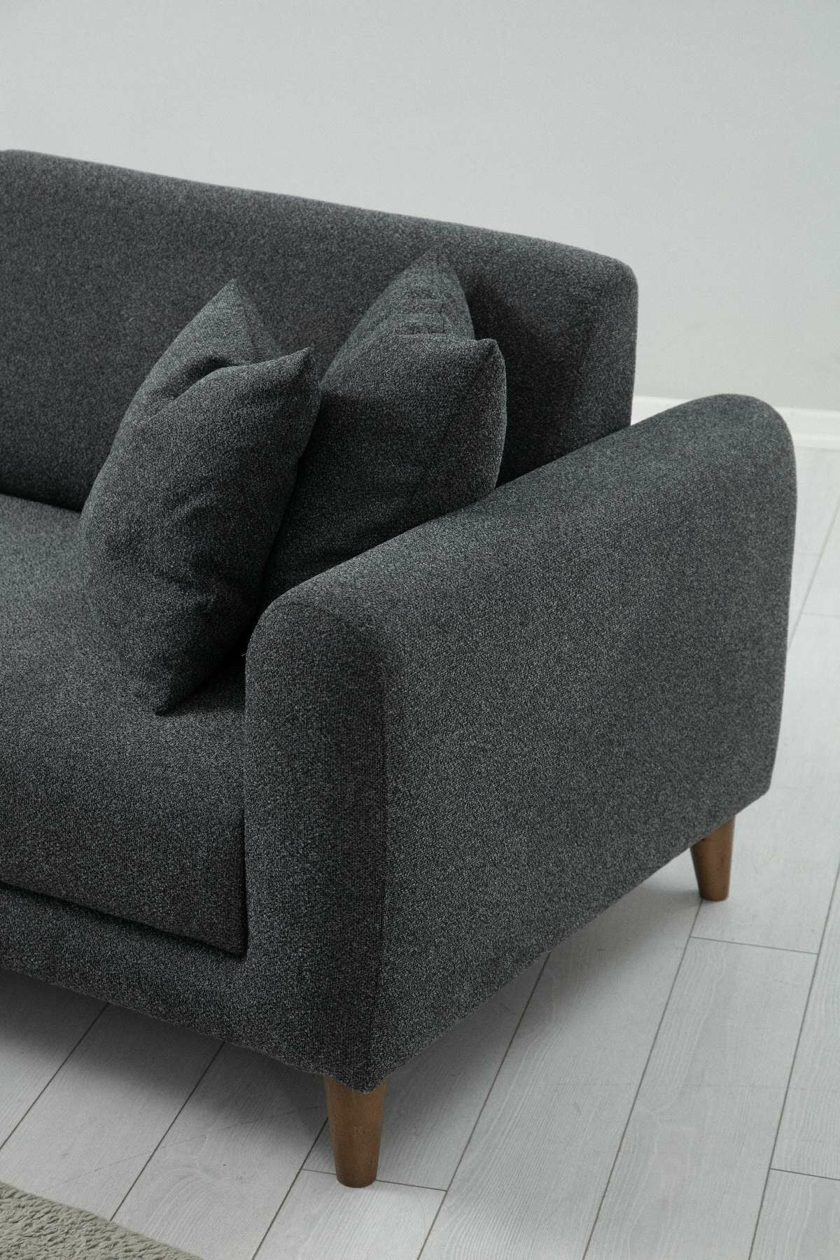 Notre canapé 3 places offre non seulement un confort exceptionnel, mais il ajoute également une touche de sophistication à n'importe quelle pièce. Le design épuré et les couleurs gris foncé s'intègrent sans effort à n'importe quel décor, ce qui en fait un choix polyvalent pour votre maison. Les pieds en bois de hêtre ajoutent une touche d'élégance et de stabilité, garantissant que ce canapé sera un ajout intemporel à votre espace de vie.