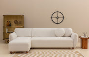 Avec sa couleur blanche unie et ses pieds en bois de noyer, notre canapé d'angle respire la sophistication et l'élégance. Les coussins fixes de l'assise et du dossier, ainsi que les deux oreillers inclus, ajoutent une touche de luxe à votre espace de vie.