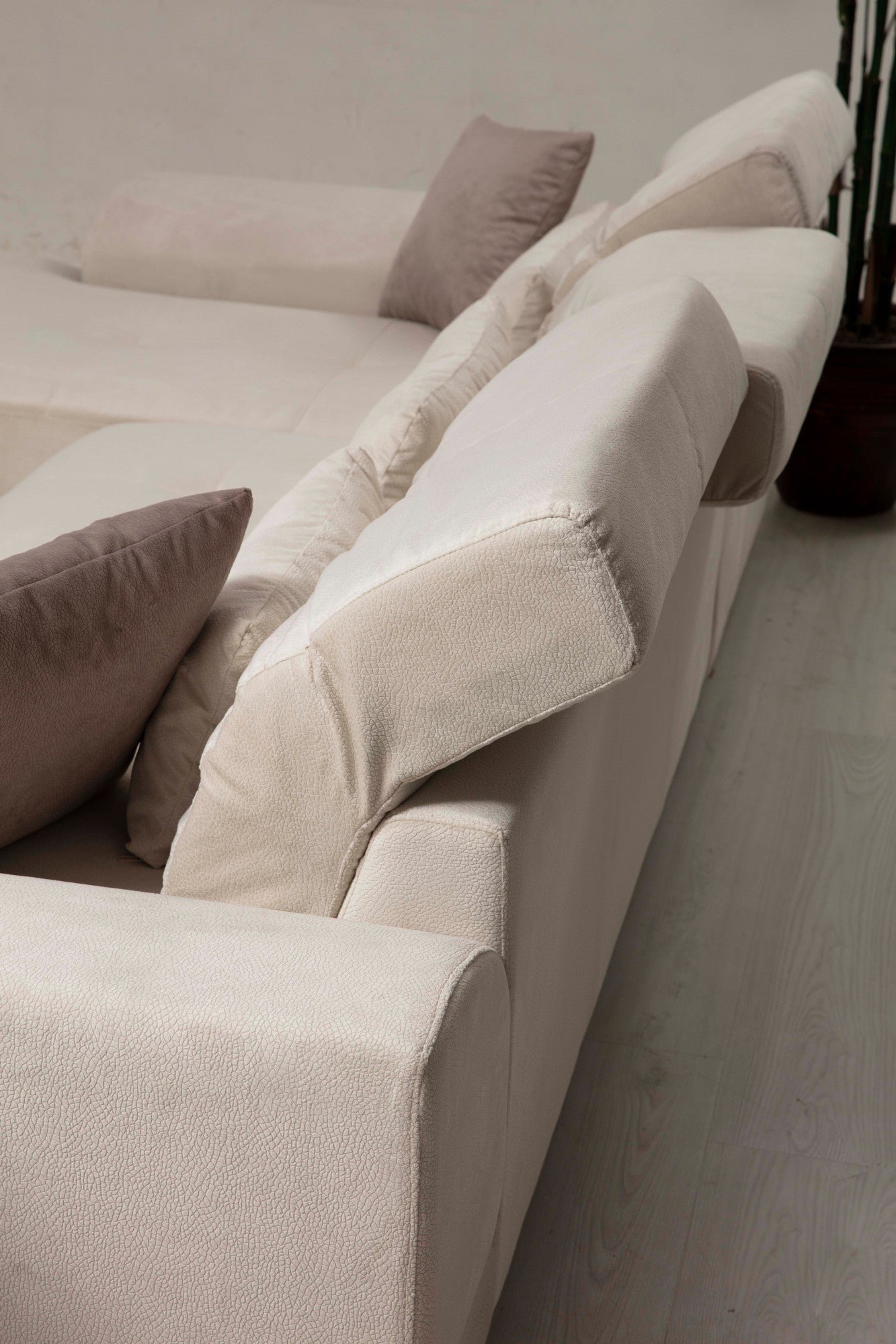 Cadre: bois de hêtre / panneaux de bordTissu: 100% polyesterLongueur: 190 cm x 308 cm Largeur: 100 cm Hauteur: 92 cmMousse: 28 DNS mousse grise douce / 24 DNS Feather / printemps au milieu pour s'asseoirMousse 60% coupée / 40% de mousse de silicone pour le dosSystème: système de canapé avec mécanisme de dossier réglable5 oreillers inclusORLISSEMENTS: 60% de mousse coupée / 40% de mousse de siliconeCoussins carrés (2 pc): 50 cm x 50 cmCoussins rectangulaires (3 pc): 65 cm x 30 cmProfondeur du siège: 140 cmProfondeur des accoudoirs: 70 cmCoussin assis portable / coussin arrière fixeTissu à secJambes: jambes en métal noir MattHauteur de la mousse: 18