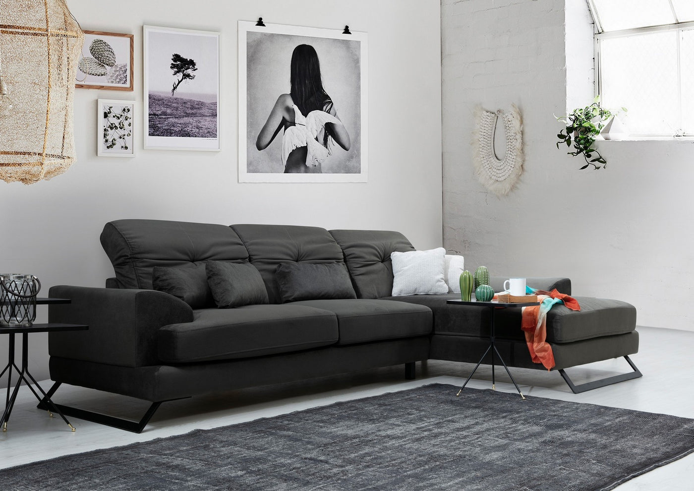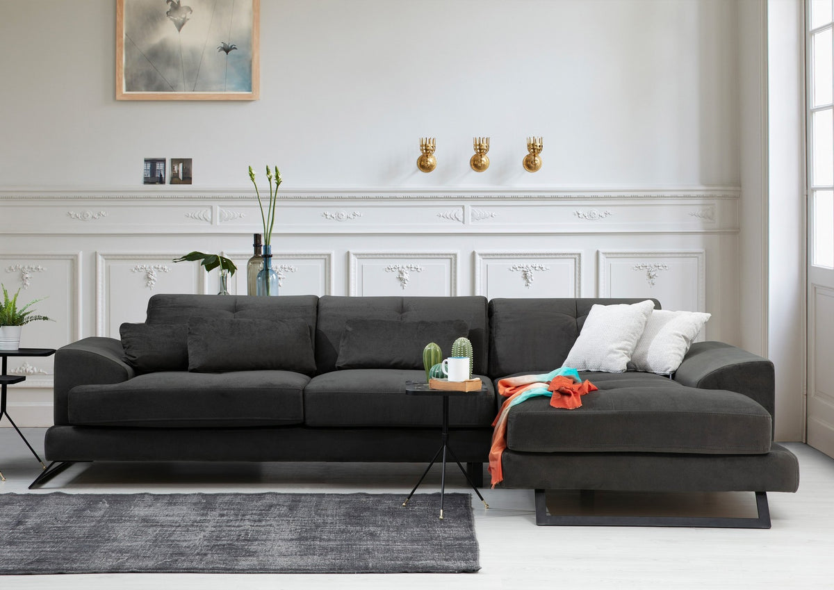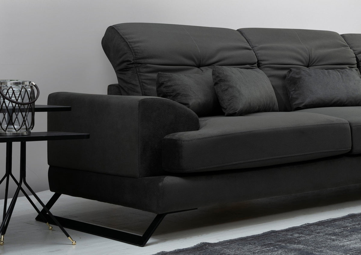 La couleur anthracite solide et les pieds d'inspiration industrielle en métal noir mat confèrent à ce canapé un aspect contemporain et sophistiqué. Il s'intègre sans effort à tous les styles de décoration, ce qui en fait un ajout polyvalent à votre intérieur.