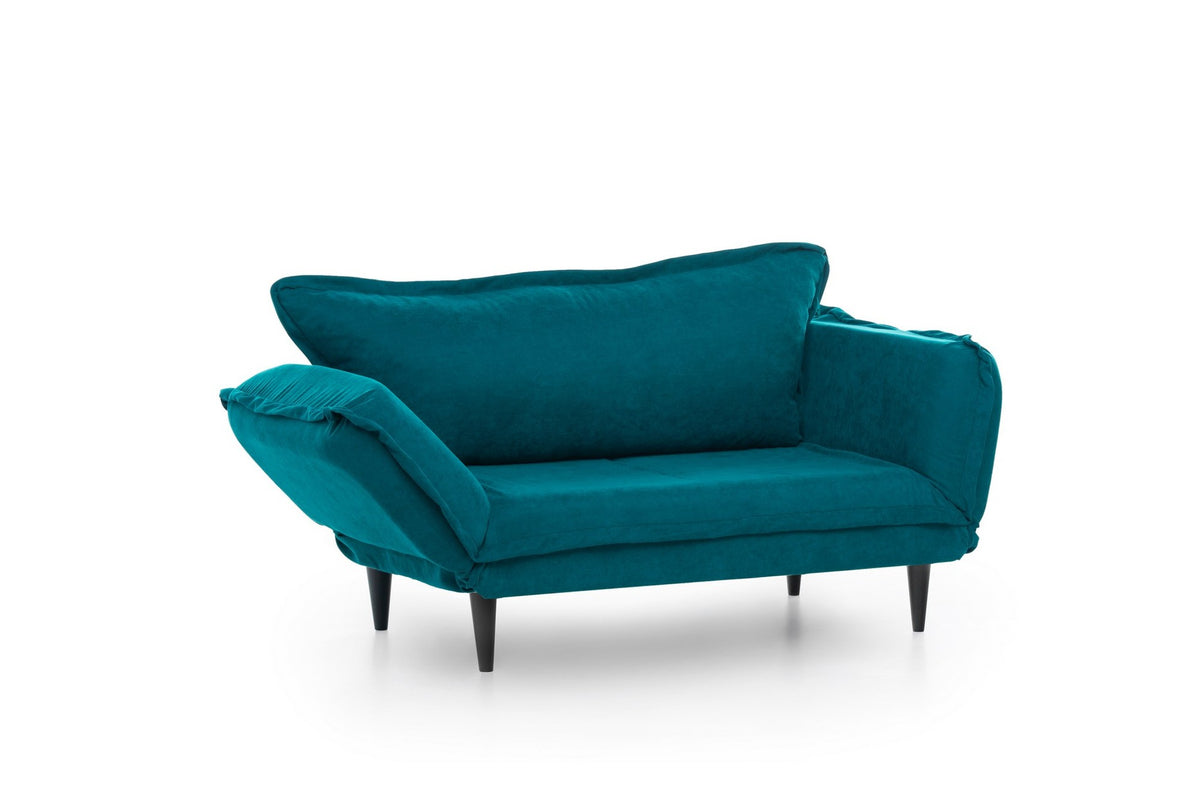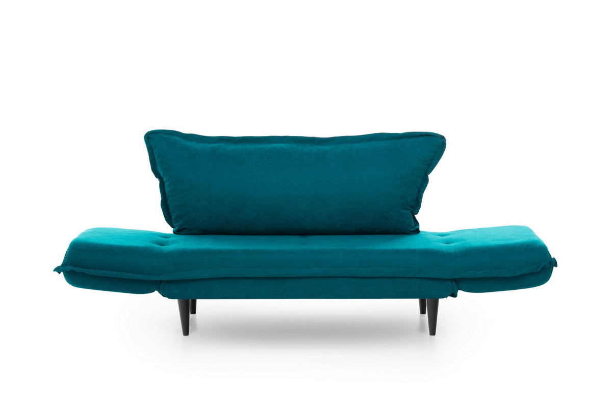 Avec son design épuré et moderne, ce canapé-lit ajoute une touche de sophistication à n'importe quelle pièce. La couleur unie en vert pétrole exsude l'élégance, tandis que les pieds en bois et le cadre en métal fournissent une base solide et durable.