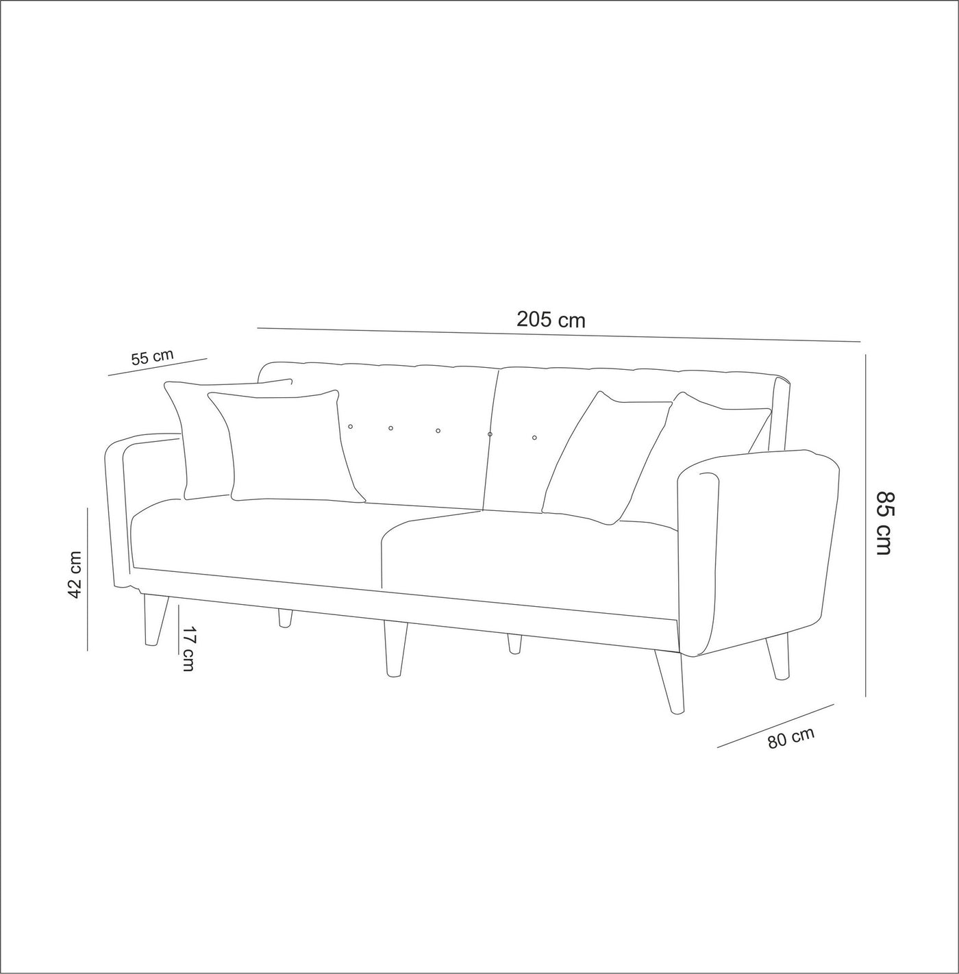 Cadre: bois de chalerieTissu: 100% lingeJambes en bois (17 cm)28 mousse DNSLargeur: 205 cm Hauteur: 85 cm de profondeur: 80...