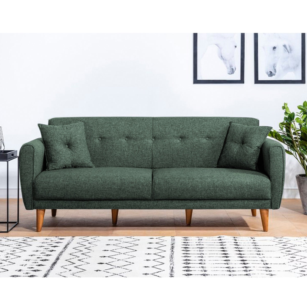 La couleur verte unie de ce canapé-lit ajoute une touche de sophistication à n'importe quelle pièce. Que vous ayez un décor moderne ou traditionnel, ce meuble polyvalent s'y intégrera parfaitement, rehaussant l'esthétique générale de votre espace de vie.