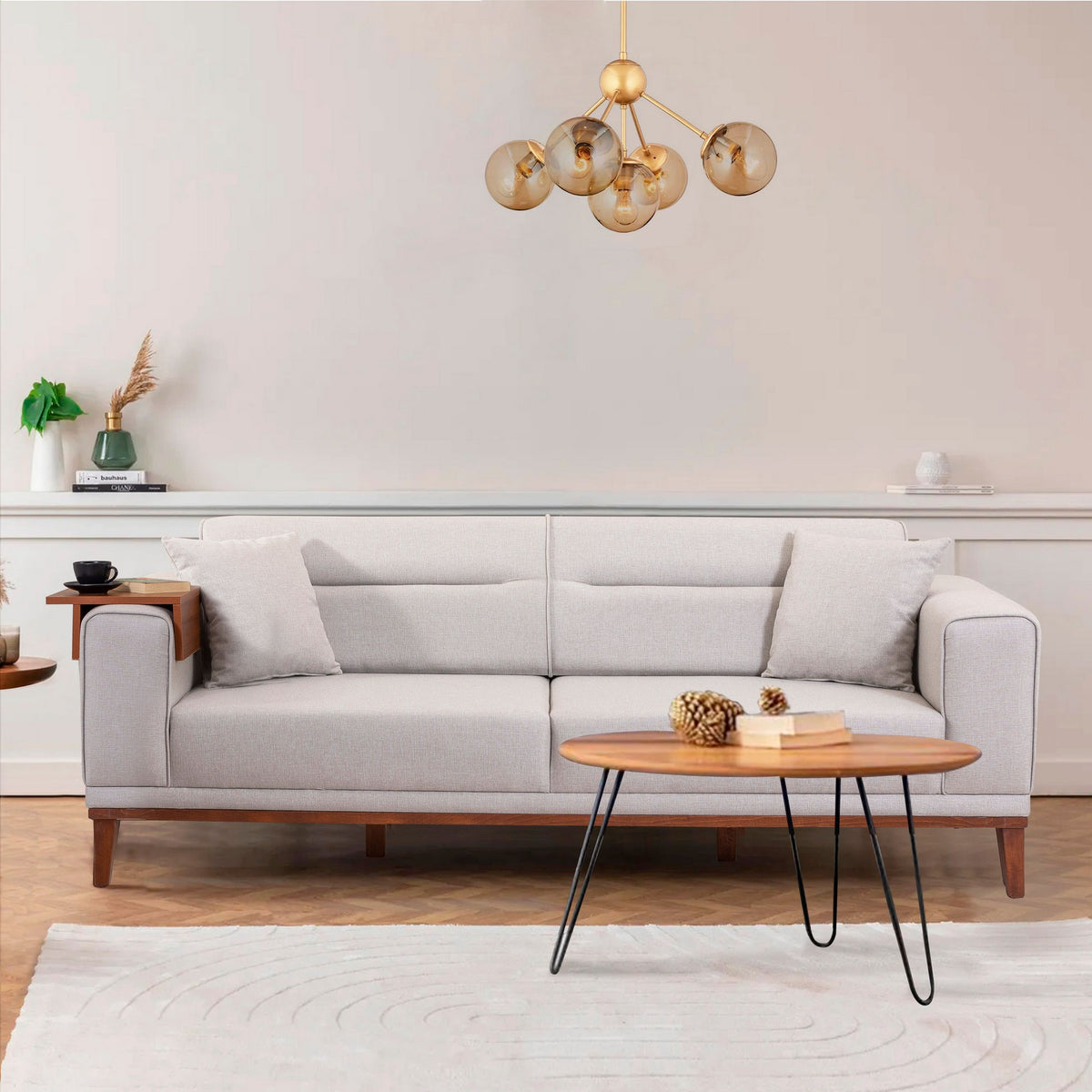 Avec son design épuré et moderne, ce canapé-lit s'adapte sans effort à tous les styles d'intérieur. Que vous préfériez une esthétique contemporaine ou rustique, sa couleur crème unie ajoute une touche de sophistication à votre salon. Les pieds en bois, d'une hauteur de 17 cm, constituent une base solide et rehaussent l'élégance générale de la pièce.