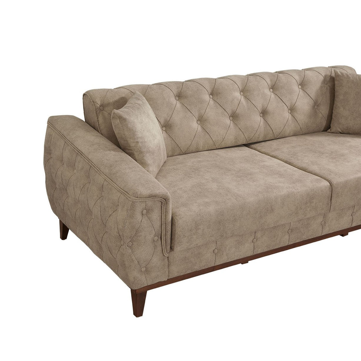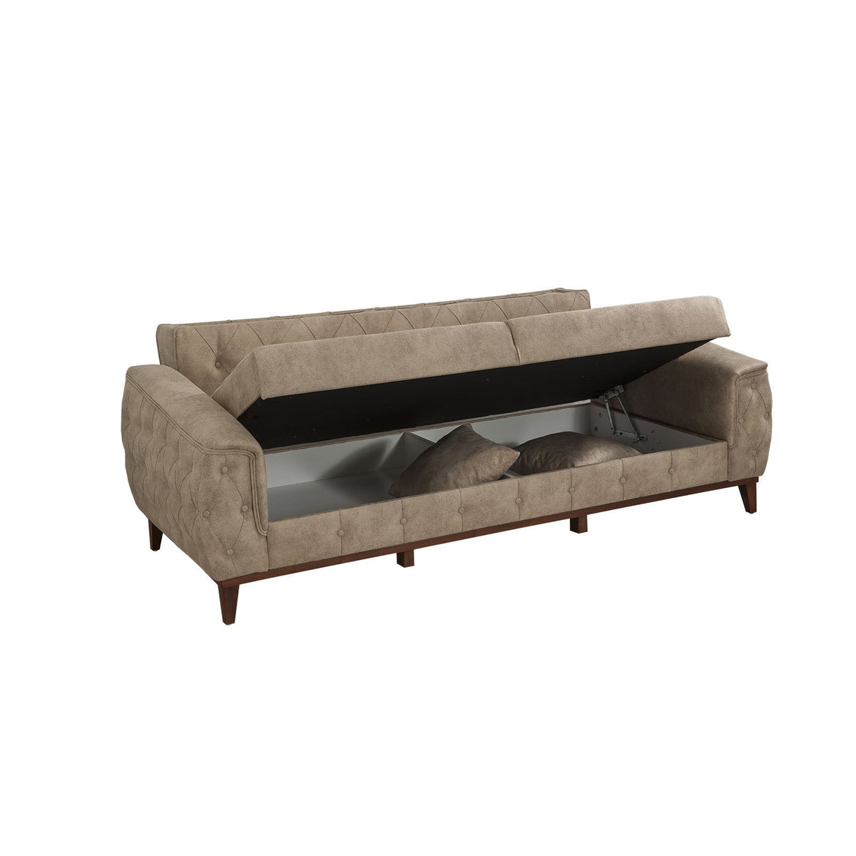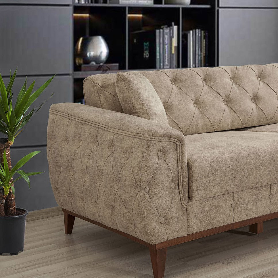 Fabriqué avec un cadre en bois de charme robuste, ce canapé-lit assure durabilité et longévité, vous permettant de profiter de son confort pendant des années. Le tissu 100% Mykonos ajoute une touche luxueuse, ce qui en fait une pièce de choix dans n'importe quelle pièce.