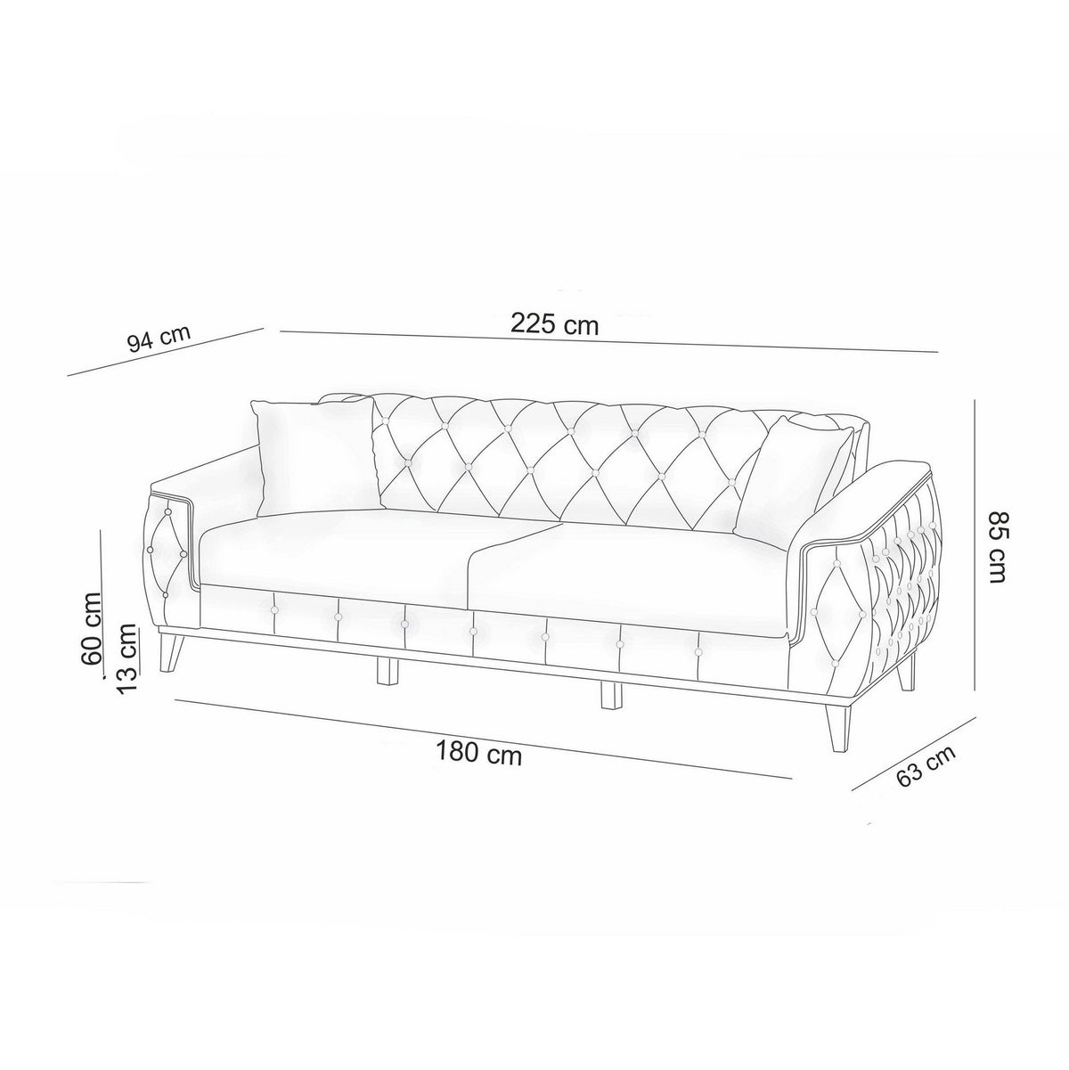 - Dimensions : Largeur : 225 cm, Hauteur : 85 cm, Profondeur : 94 cm : Largeur : 225 cm, Hauteur : 85 cm, Profondeur : 94 cm