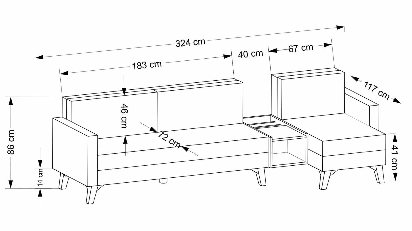 Avec une largeur de 324 cm, une hauteur de 86 cm et une profondeur de 117 cm, ce canapé offre un grand espace pour vous et vos invités. Que vous organisiez une petite réunion ou que vous profitiez simplement d'une soirée tranquille à la maison, ce canapé est l'endroit idéal pour se détendre et se relaxer.