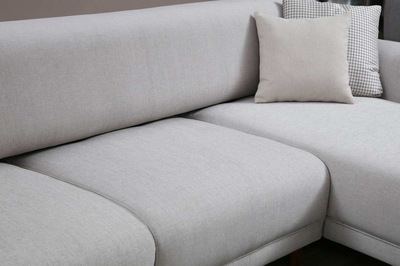 Fabriqué avec un cadre robuste en bois de hêtre et en aggloméré, notre canapé-lit d'angle assure durabilité et longévité. Le tissu 100% polyester ajoute une touche d'élégance et est facile à nettoyer, ce qui facilite l'entretien.
