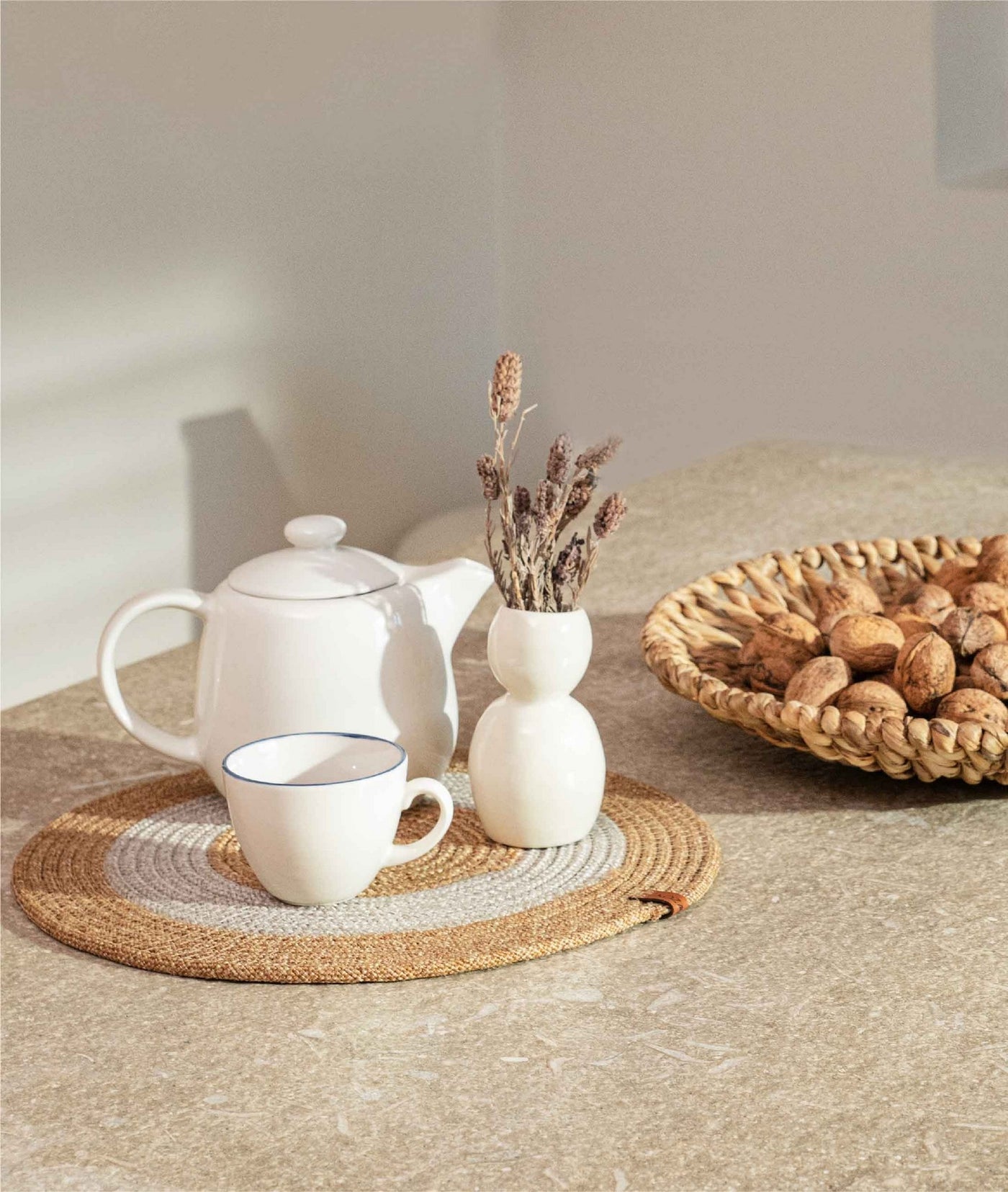 Découvrez l'élégance intemporelle de notre chemin de table 100 % coton fabriqué à la main. Transformez votre intérieur grâce à sa polyvalence et imprégnez-vous du savoir-faire artisanal qui a présidé à la création de cette pièce exquise. Ne manquez pas l'occasion d'ajouter une touche de luxe à votre espace.