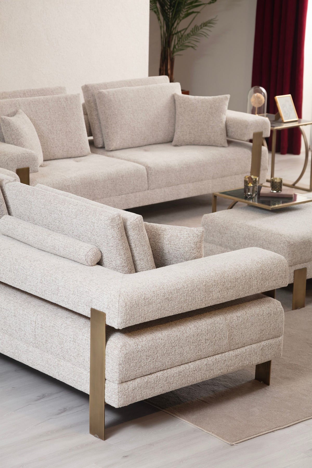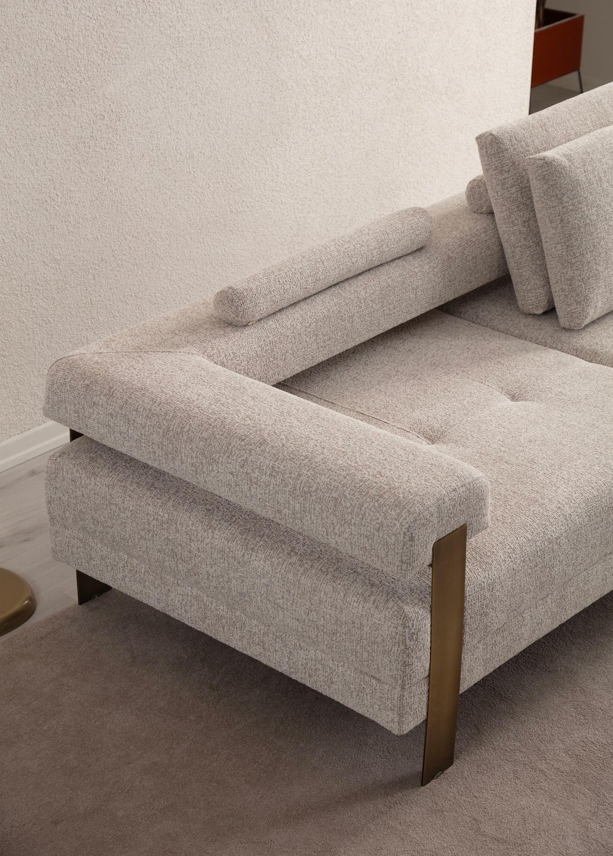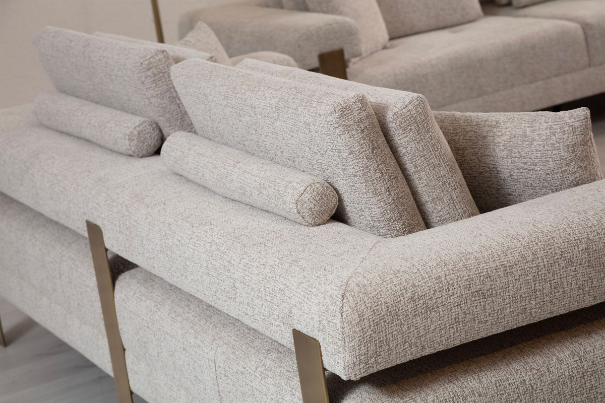 Matériau du coussin d'assise : Mousse de 32 DNS renforcée de 5 cm de plumes d'oiseau.