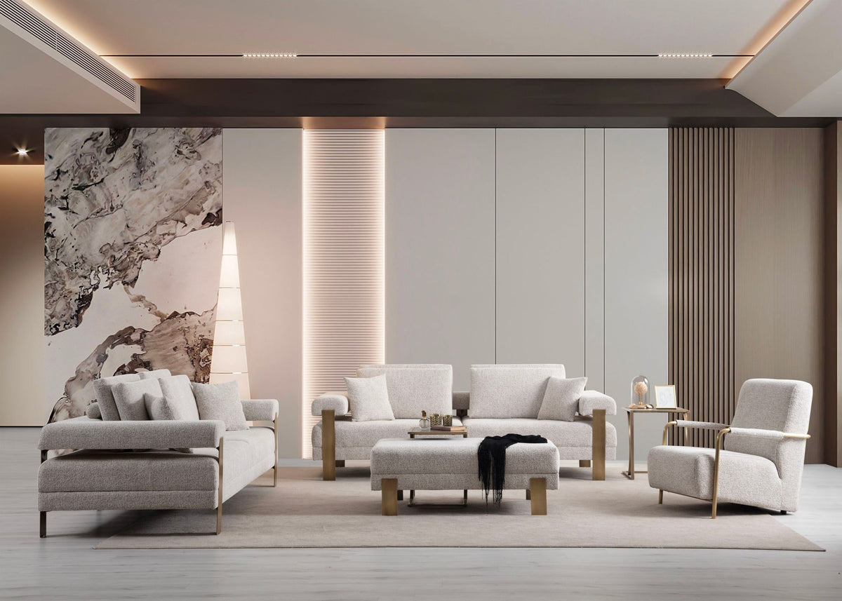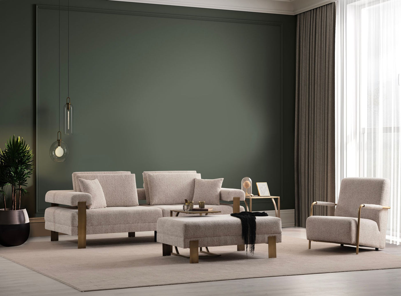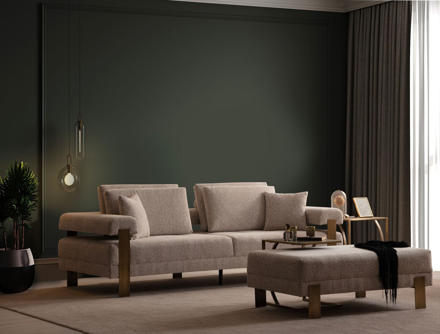 Matériau du coussin d'assise : Mousse de 32 DNS renforcée de 5 cm de plumes d'oiseau.