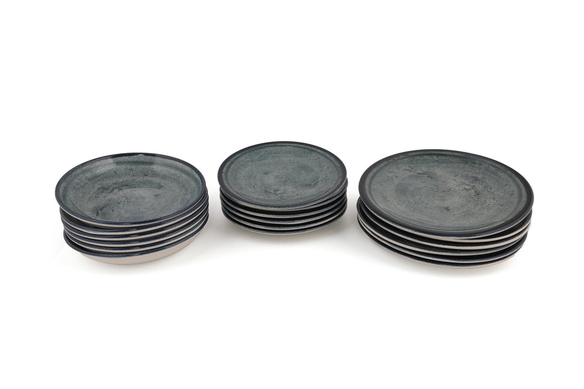 Avec son étonnante combinaison de couleurs bleu foncé et vert, ce service de table ajoute sans effort une touche de sophistication à n'importe quel décor de table. Les teintes vives créent un contraste visuellement attrayant qui ne manquera pas d'impressionner vos invités.