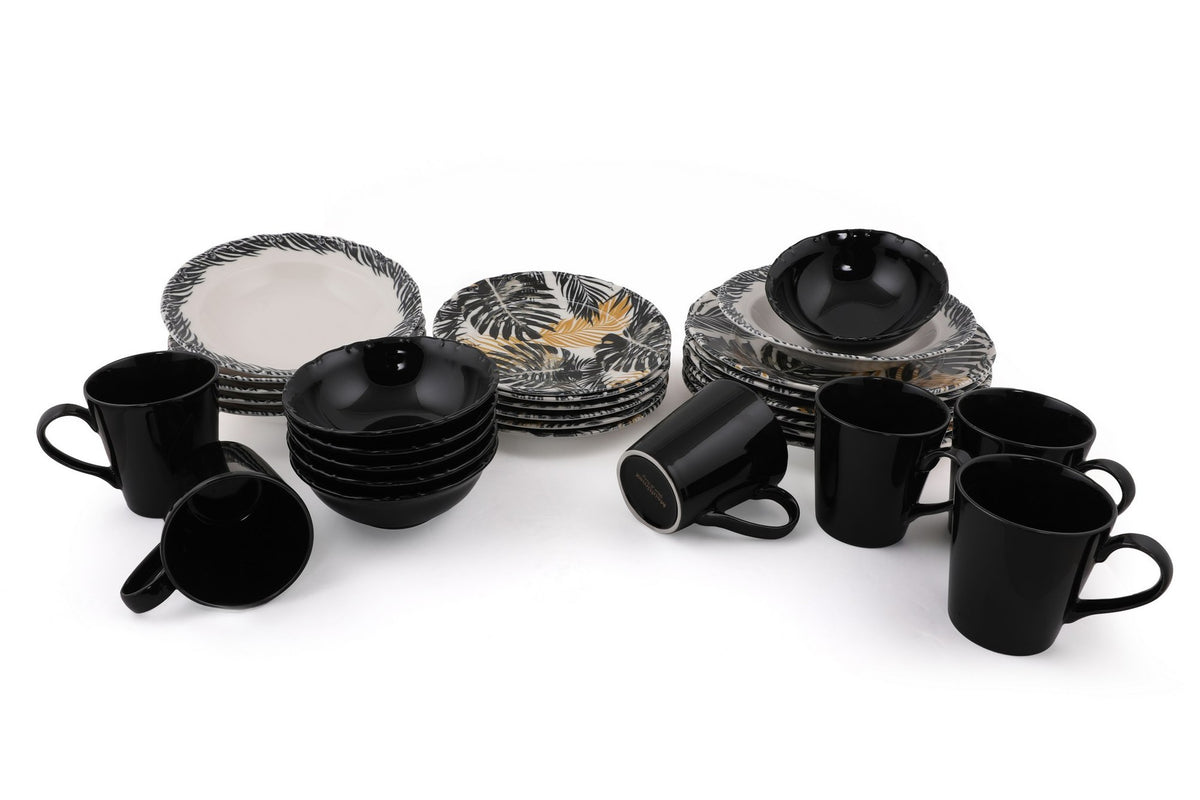 Chaque pièce de ce service est fabriquée à 100 % en porcelaine, ce qui lui confère un attrait étonnant et intemporel qui impressionnera vos invités et laissera un souvenir impérissable. La combinaison des couleurs crème, noir et or ajoute une touche de sophistication et d'opulence à votre table, faisant de chaque repas une occasion spéciale.