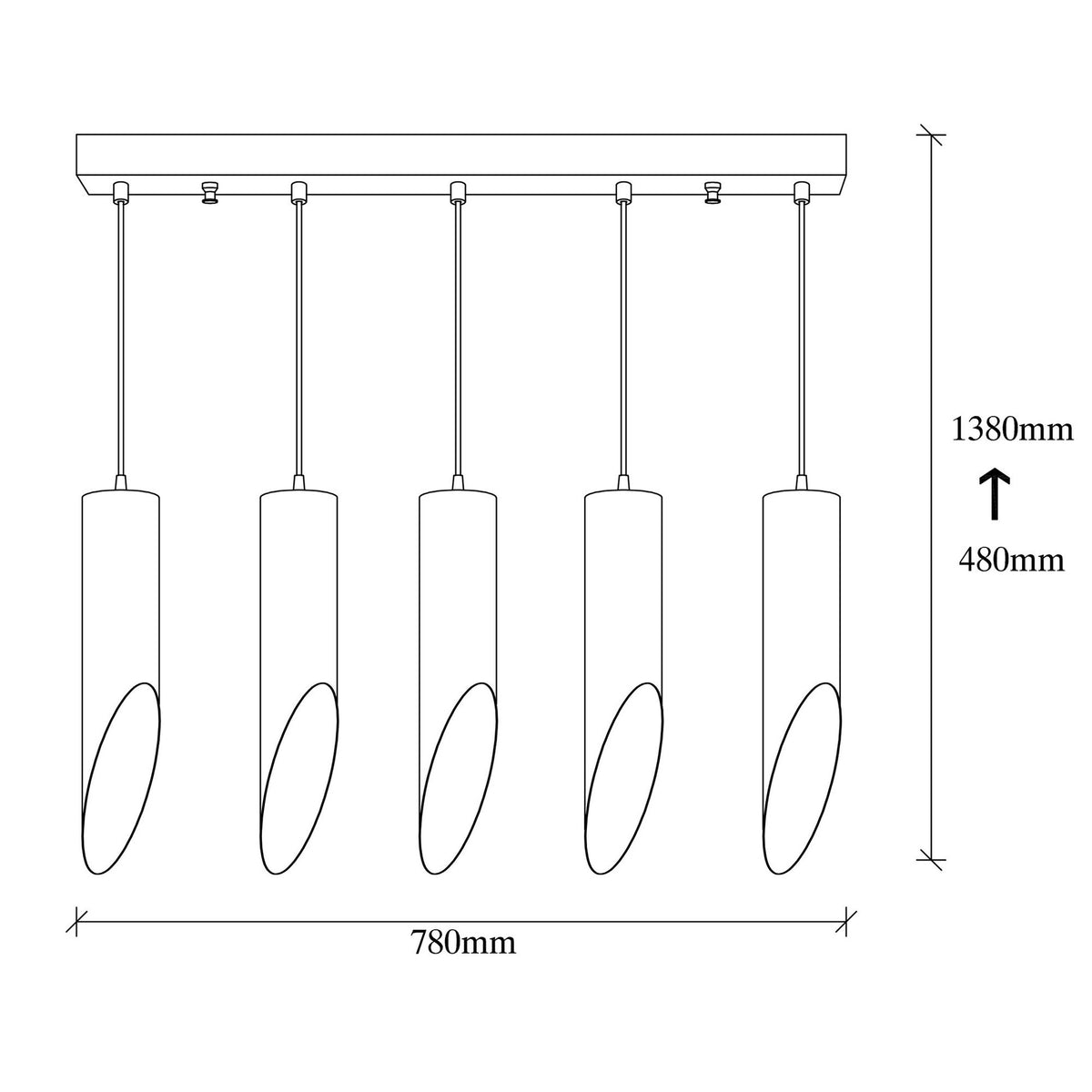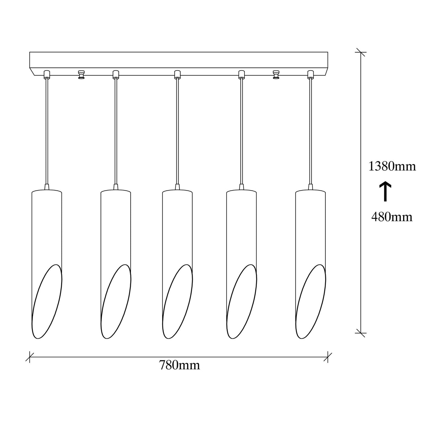 Corps métalliqueTaille: 75 x 8 cmHauteur: 138 cmDiamètre de la casquette: 8 cmHauteur de la casquette: 41 cmHauteur réglableTaille de la plaque de base: 78 x 6 x 4 cmLongueur du câble: 90 cmType de socket: 5 x E 27 max 40 WCode IP: IP20L'ampoule n'est pas incluse