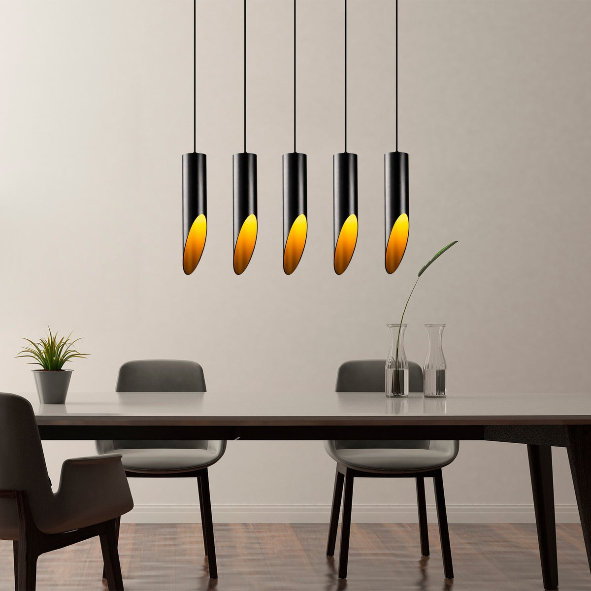 Fabriqué avec un corps en métal robuste, notre lustre est conçu pour durer. La combinaison de couleurs noir et or ajoute une touche de luxe et de raffinement, ce qui le rend parfaitement adapté aux intérieurs modernes, industriels et d'inspiration scandinave. Son design unique et novateur deviendra instantanément le point de mire de n'importe quelle pièce.