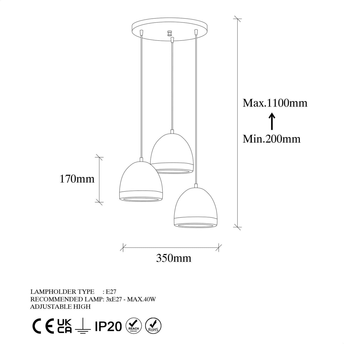 - Type de douille : 3 x E27 Max 40 W pour un éclairage optimal