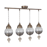 Lustre Neptune, rangée de 4 lampes suspendues avec verre craquelé antique