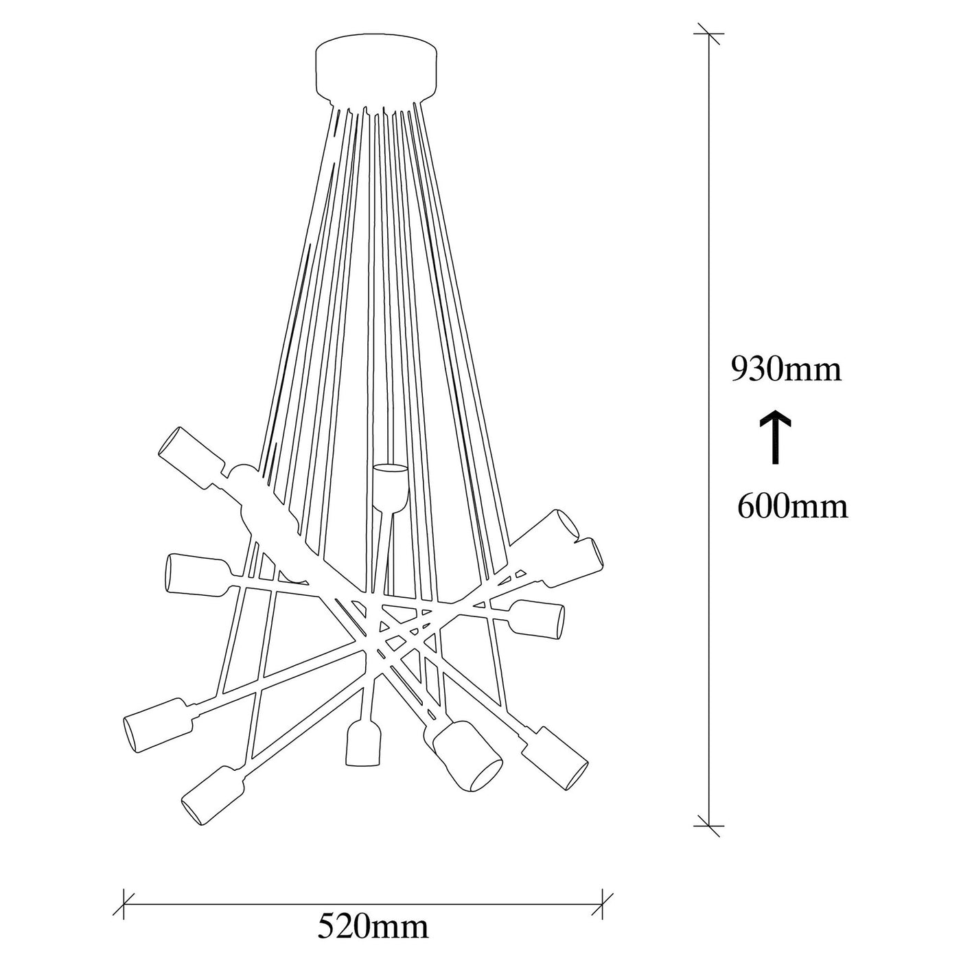 Corps métalliqueDiamètre: 52 cmHauteur: 93 cmHauteur réglableDiamètre de la plaque de base: 20 cmHauteur de la plaque de base: 3 cmLongueur du câble: 90 cmType de socket: 14 x E 27 max 40 WCode IP: IP20L'ampoule n'est pas incluse