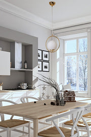 Lustre Ring Lampe à suspension simple en verre blanc doré