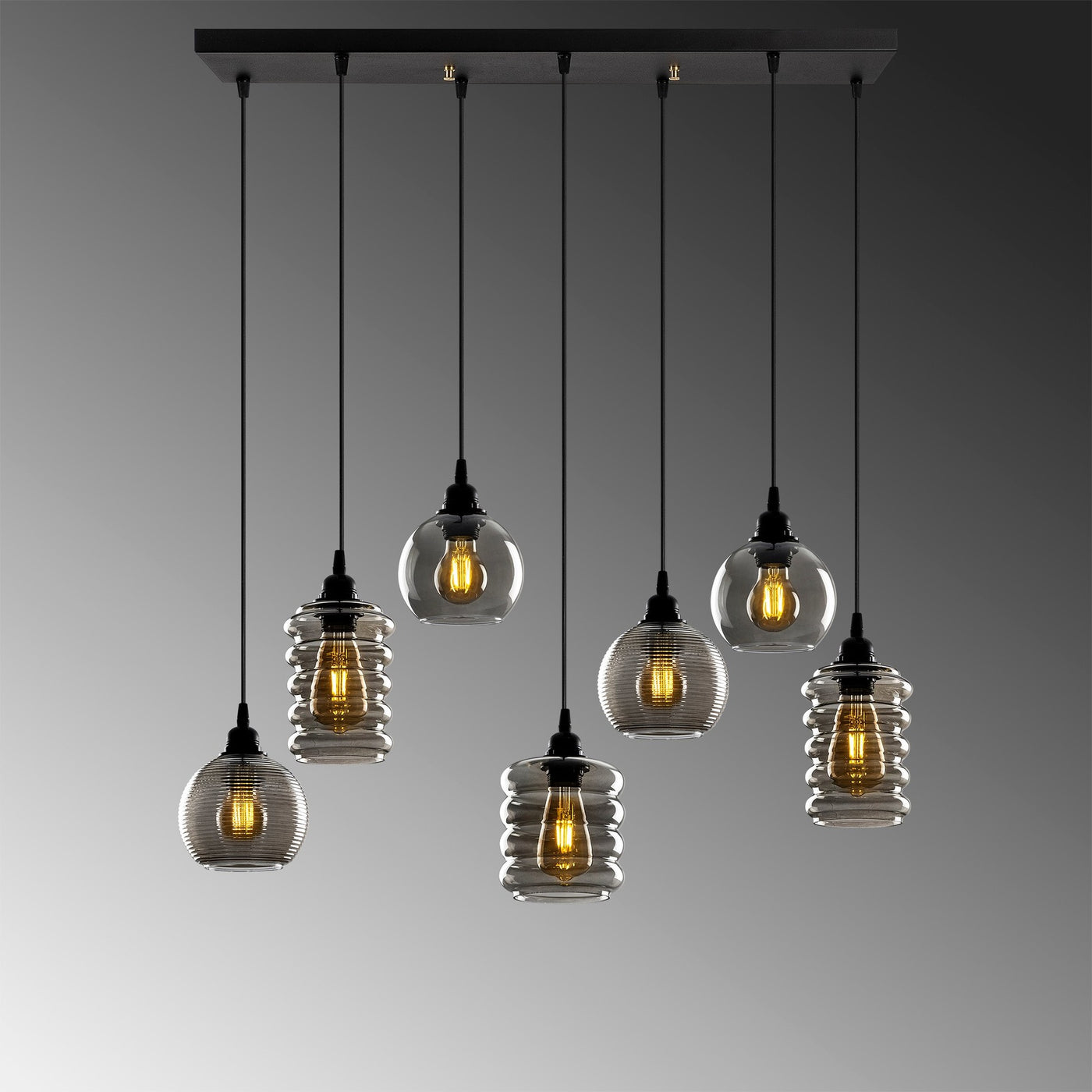 Avec son design épuré et minimaliste, notre lustre se fond sans effort dans n'importe quel style d'intérieur, ajoutant une touche de sophistication et d'élégance. La couleur des fumées de la calotte de verre crée un jeu de lumière envoûtant, projetant une lueur douce et enchanteresse qui transformera votre espace en un havre de tranquillité.