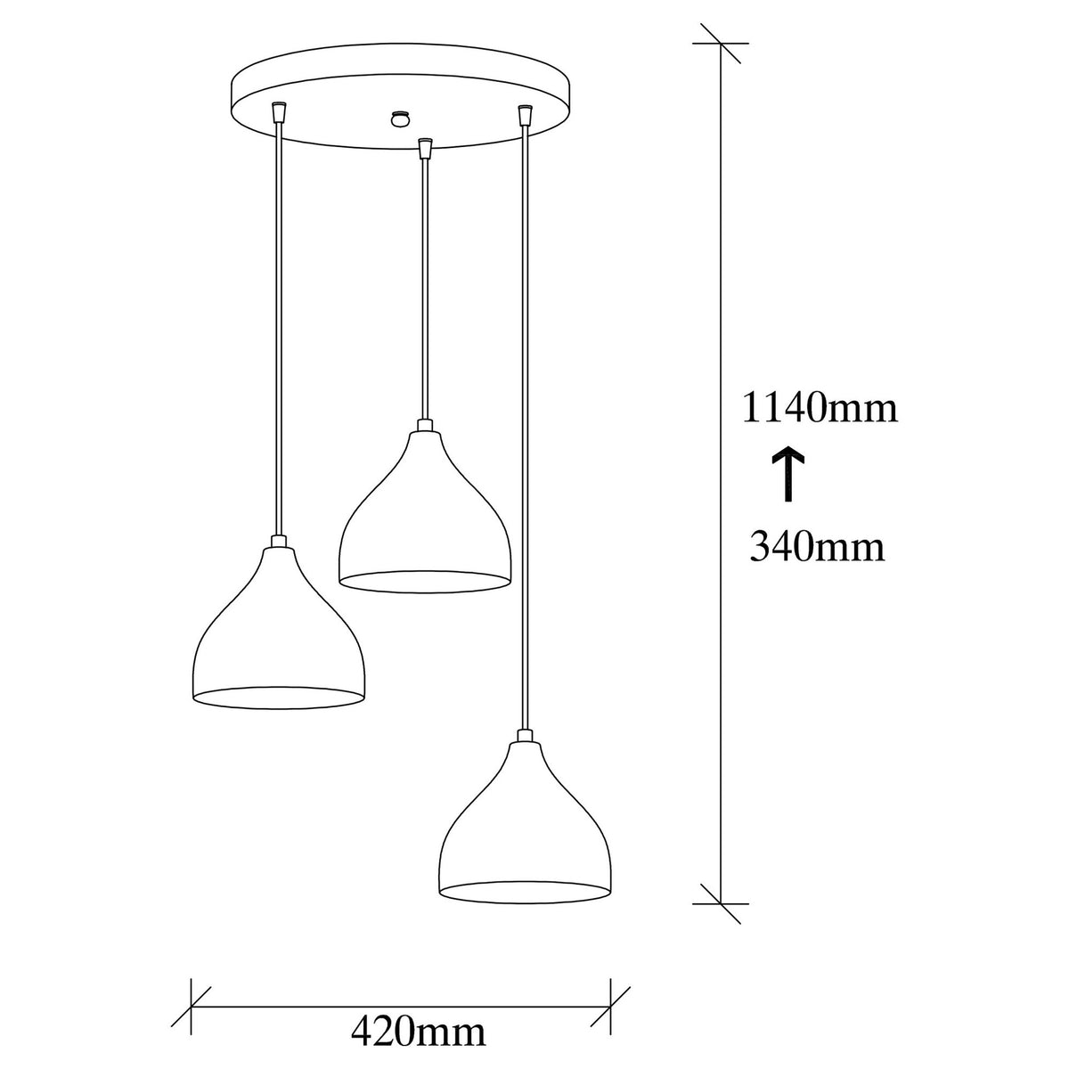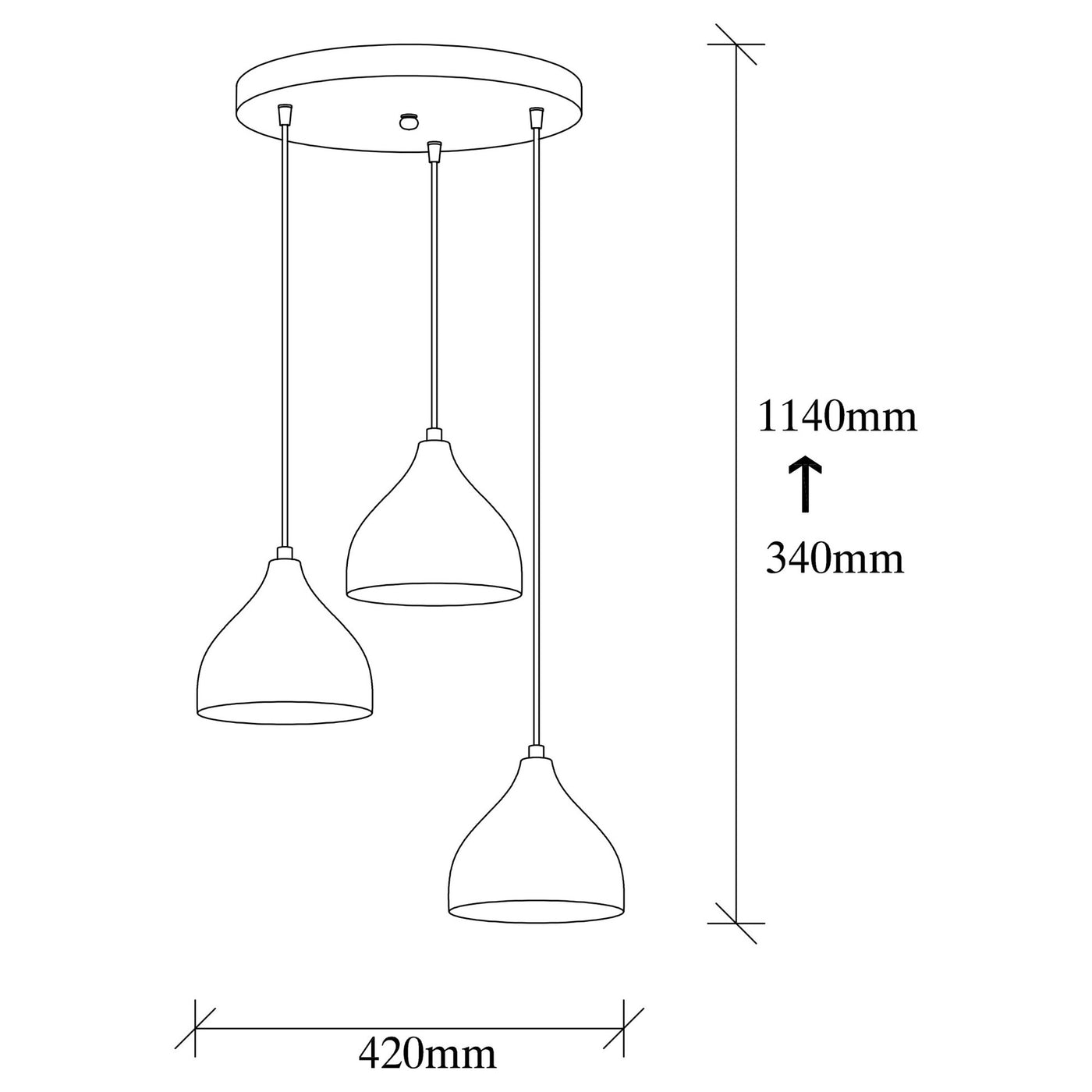 Corps métalliqueTaille: 42 x 42 cmHauteur: 114 cmDiamètre de la casquette: 18 cmHauteur de la casquette: 17 cmHauteur réglableDiamètre de la plaque de base: 30 cmHauteur de la plaque de base: 3 cmLongueur du câble: 90 cmType de socket: 3 x E 27 max 40 WCode IP: IP20