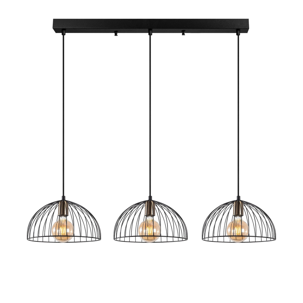 Corps métalliqueCasquette métalliqueDiamètre de Cap: 31 cmHauteur de la casquette: 21 cmTaille: 101 x 31 x 105 cmTaille de la plaque de base: 78 x 6 cmHauteur de la plaque de base: 4 cmLongueur du câble: 90 cmIp20Type de socket: 3 x E27 max 40 WHauteur réglable