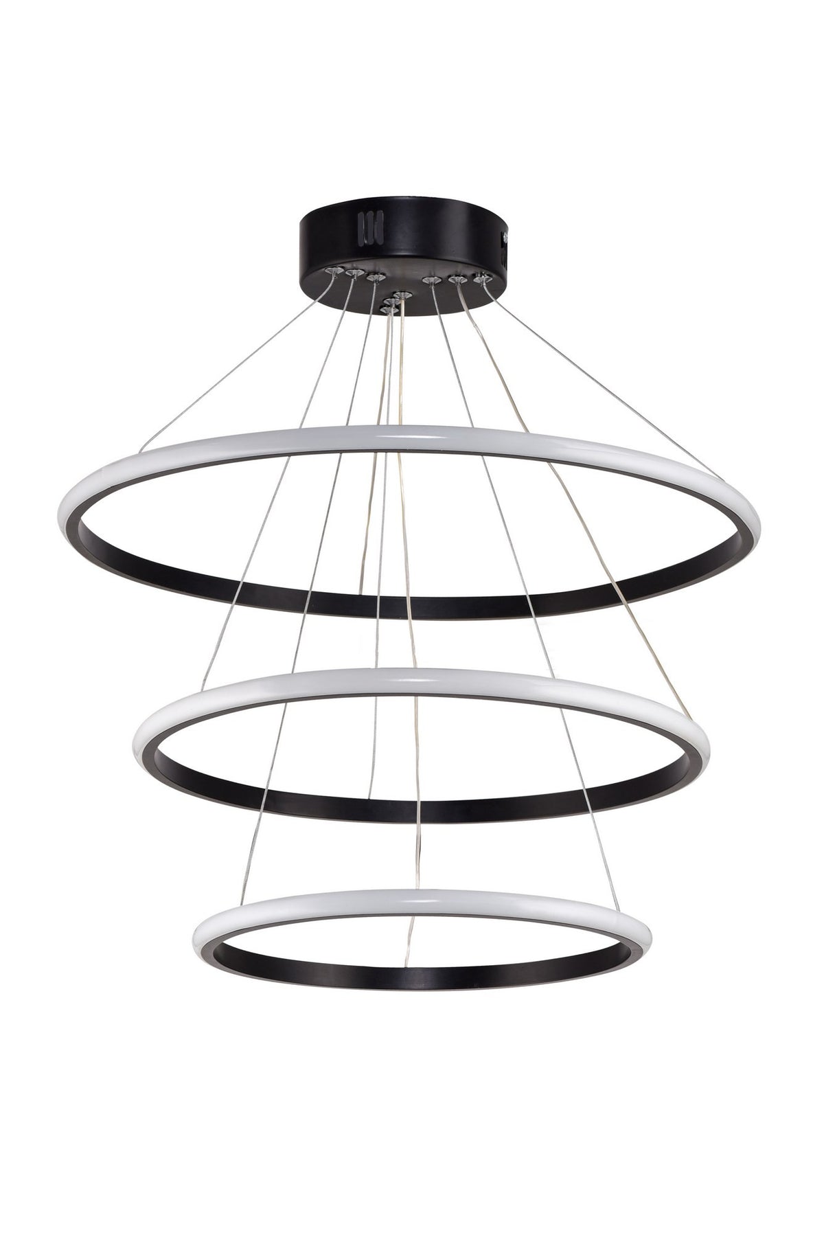 Corps d'aliminiumDimensions du lustre:Diamètre petit: 30 cmDiamètre moyen: 40 cmDiamètre grand: 50 cmHauteur: réglable 0-80 cmPeinture à revêtement électrostatique noirType de prise: LED 4000 KCouleur de LED: Jaune60-80 watt