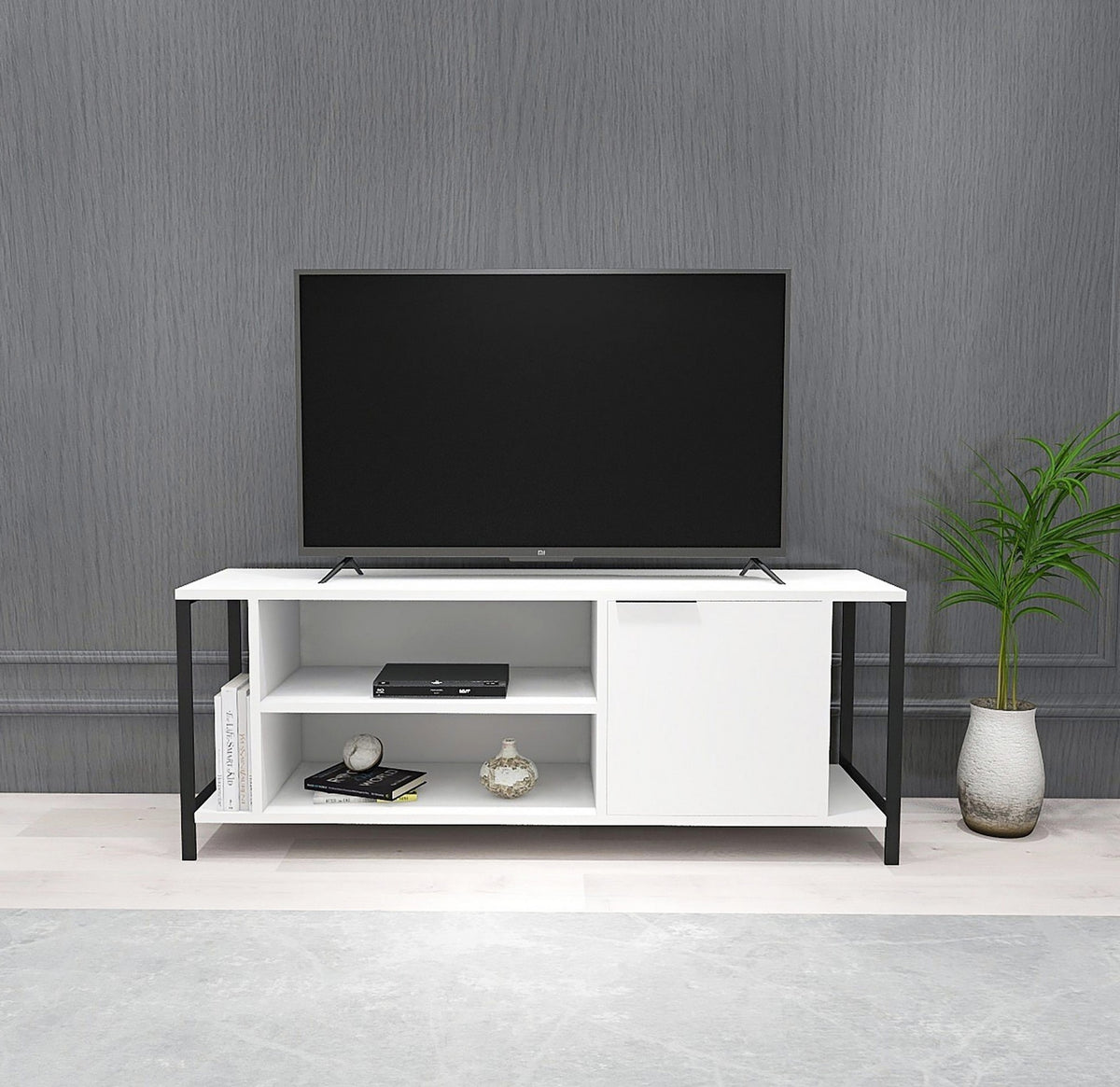 Combinant les couleurs blanche et noire, notre meuble TV affiche une esthétique élégante et moderne qui s'intègre sans effort à tous les styles d'intérieur. Son design minimaliste ajoute une touche de sophistication à votre espace de vie et en fait le point central de votre pièce.
