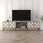 L'association des couleurs noyer et blanc confère à ce meuble TV une allure élégante et raffinée, ce qui en fait un ajout remarquable à n'importe quelle pièce. Les couleurs contrastées créent un point focal visuellement attrayant qui rehaussera instantanément la décoration de votre maison.