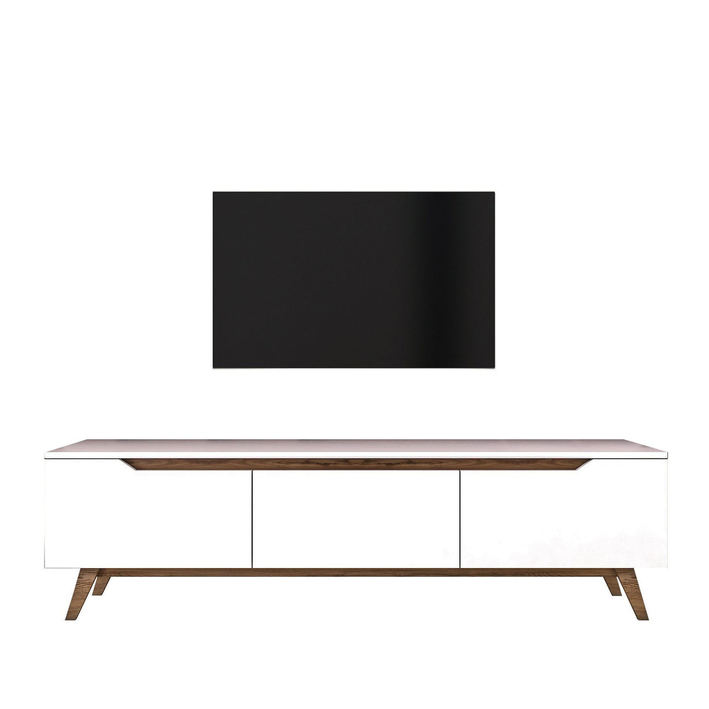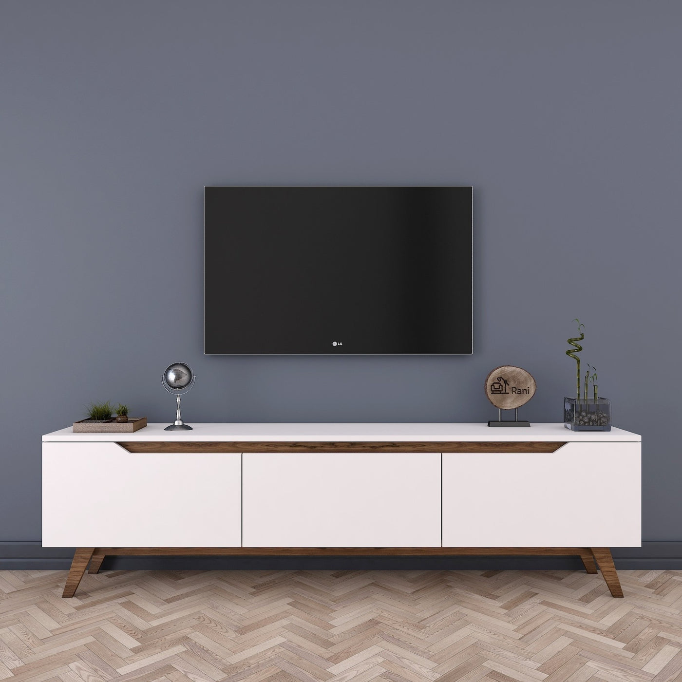 Non seulement ce meuble TV offre de nombreuses options de rangement, mais il est également incroyablement polyvalent. Son design moderne et original lui permet de s'adapter à tous les styles d'intérieur, qu'ils soient contemporains ou traditionnels. La combinaison des couleurs blanc et noyer ajoute une touche de chaleur et de sophistication à votre espace de vie, créant une atmosphère confortable et accueillante.