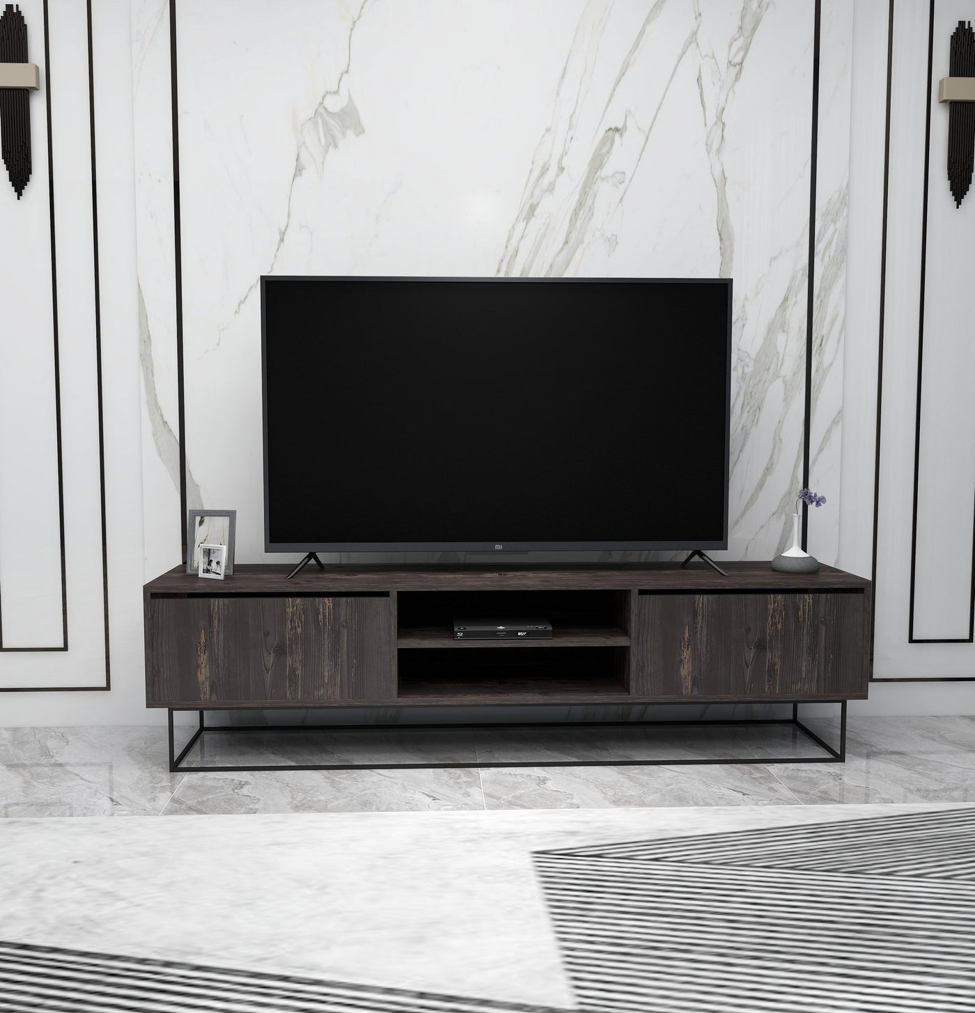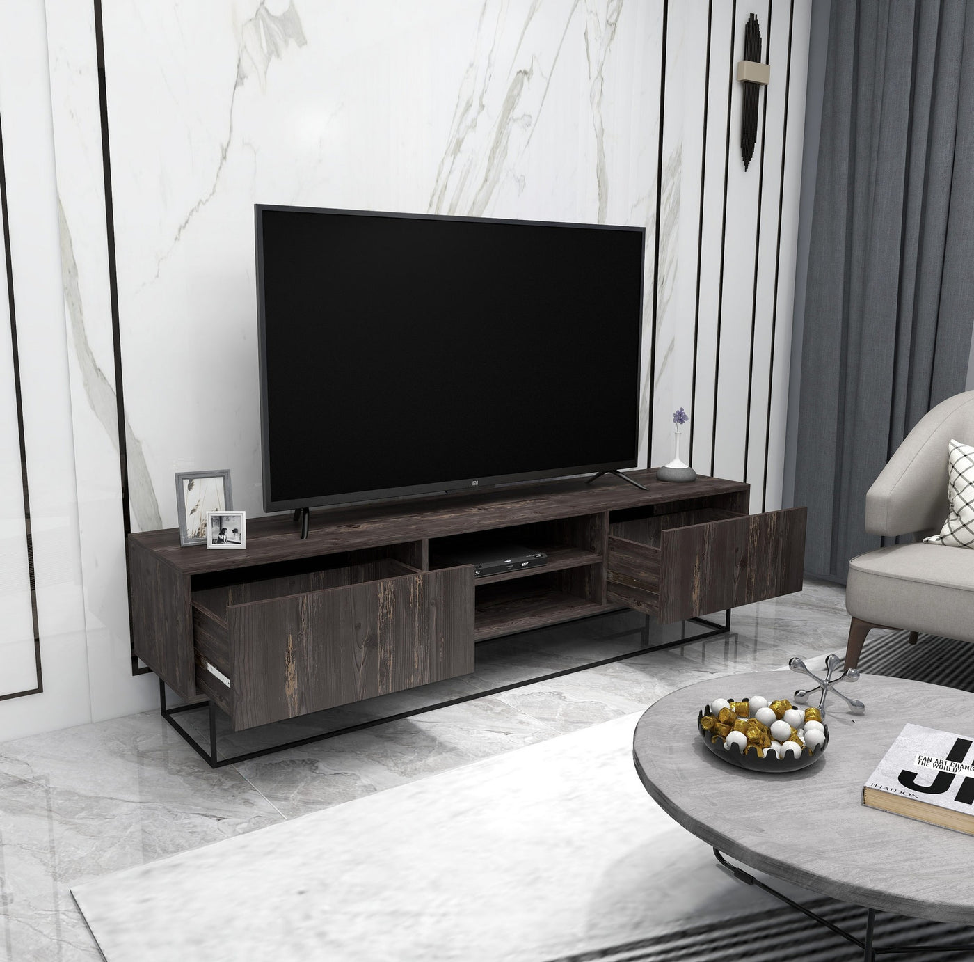 Avec son design d'inspiration industrielle, notre meuble TV ajoute une touche d'élégance à votre intérieur. La combinaison des couleurs marron foncé et noir crée un contraste saisissant, ce qui en fait un complément parfait pour tout intérieur contemporain ou à thème industriel.