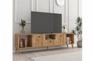 Avec une largeur de 180 cm, une hauteur de 45 cm et une profondeur de 30 cm, notre meuble TV offre suffisamment d'espace pour accueillir votre téléviseur, vos appareils multimédias et d'autres éléments essentiels. Les étagères et les compartiments bien pensés vous permettent d'organiser soigneusement vos affaires et de garder votre salon propre et sans encombrement.