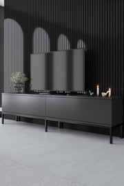Ajoutez une touche d'élégance à votre intérieur avec notre meuble TV. Son design épuré et moderne transformera instantanément votre salon en un espace élégant et accueillant. La combinaison des couleurs anthracite et noir ajoute une touche contemporaine qui s'intègre à tous les décors.